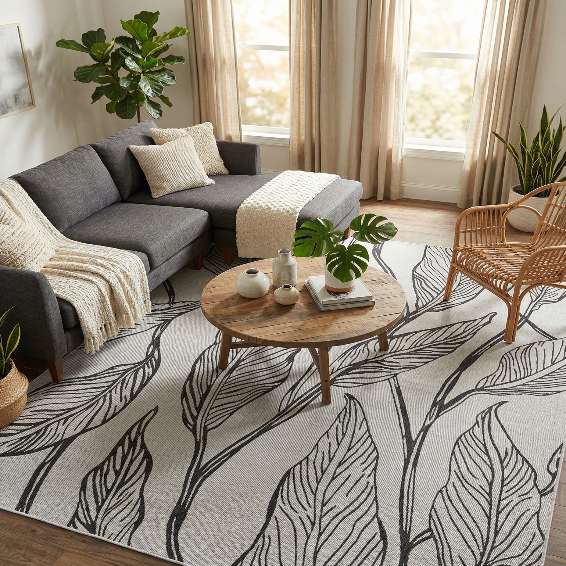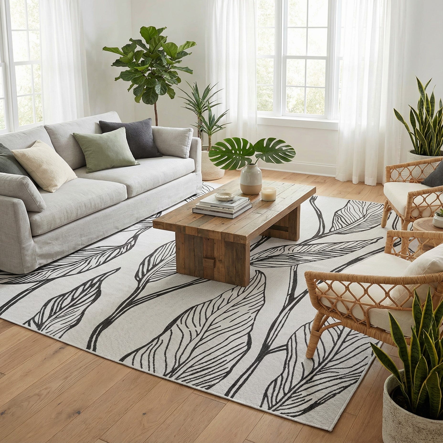 7' 10 x 11' Washable Botanical Indoor / Outdoor Rug