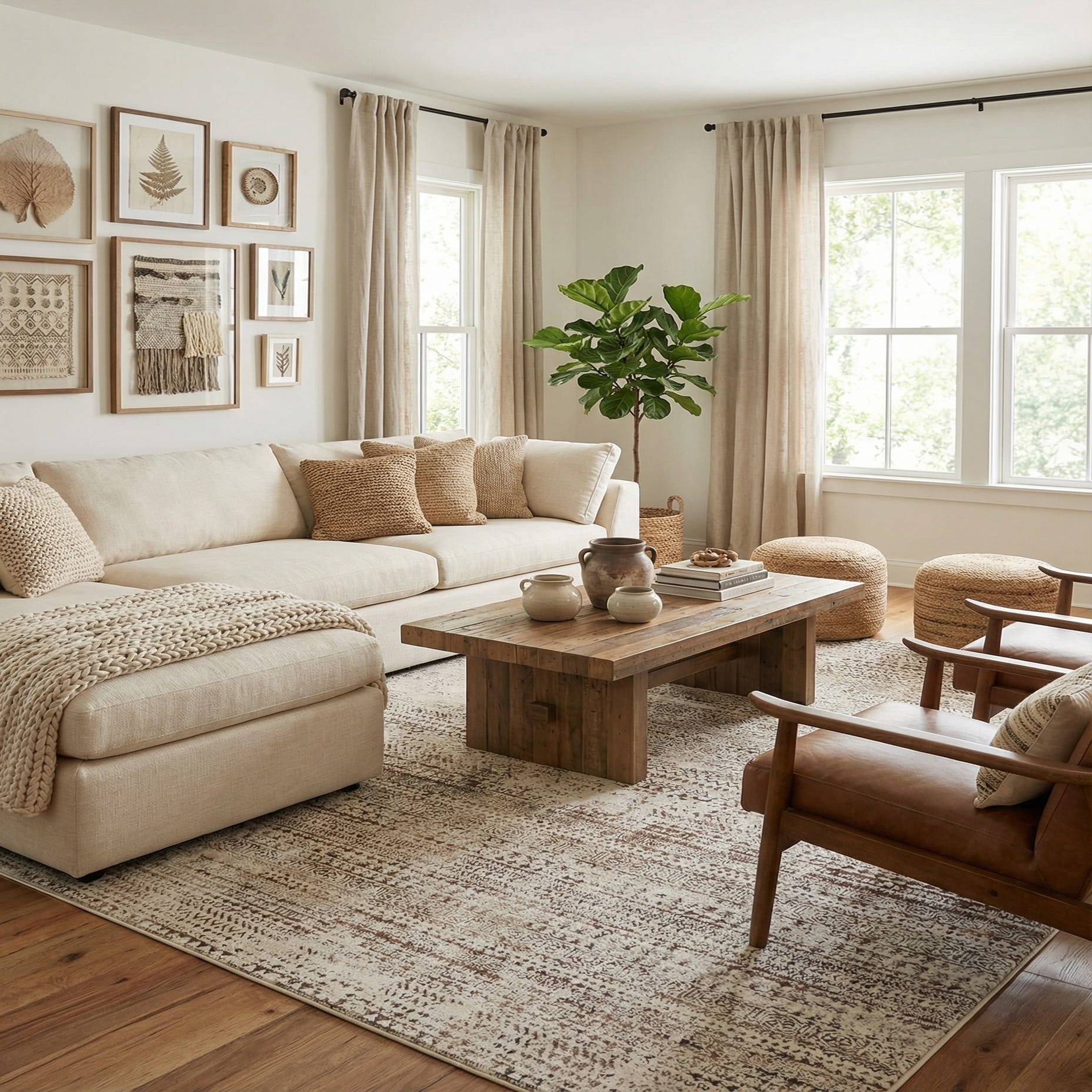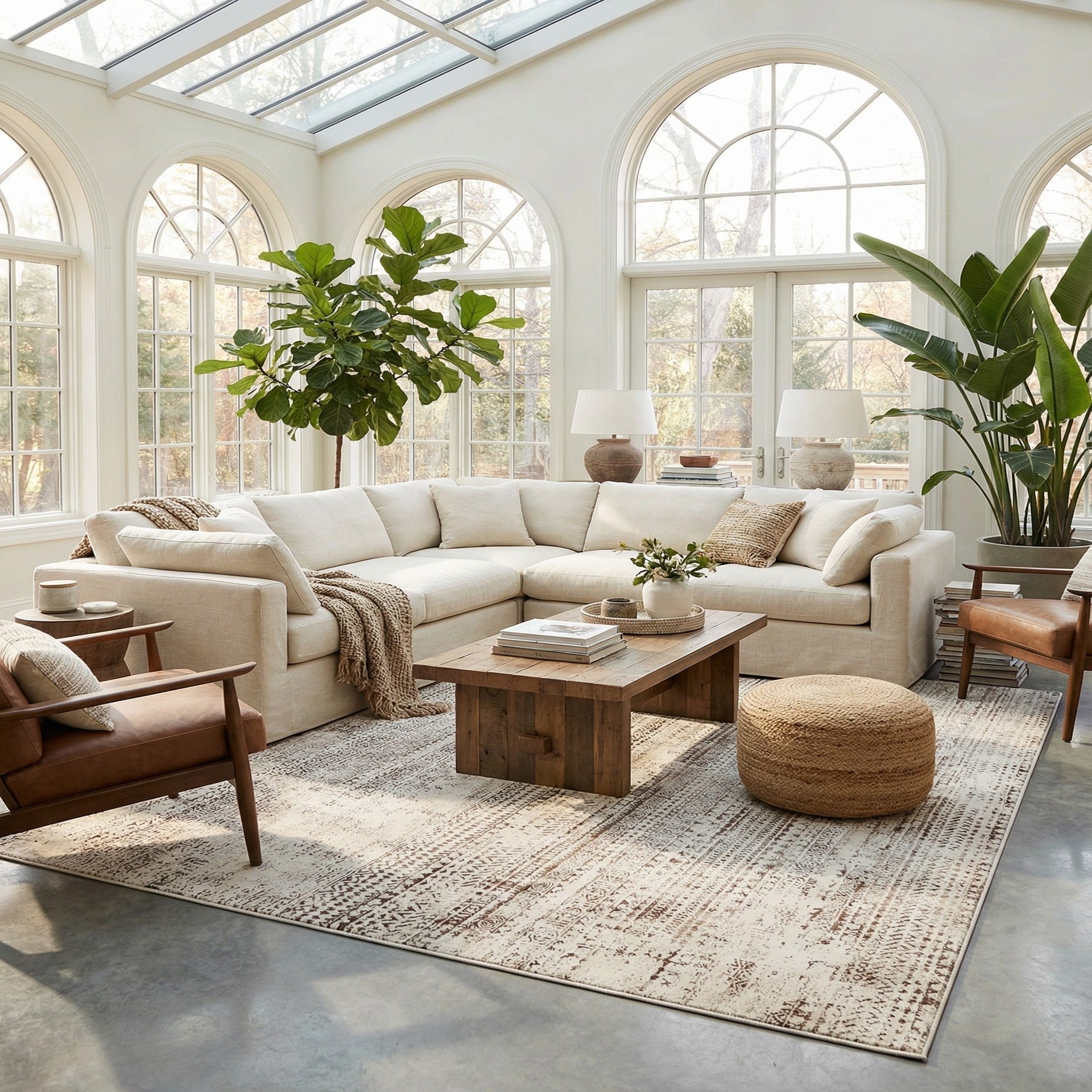 Primary color is Chocolate Brown. Colors in this rug include: Chocolate Brown, Beige.