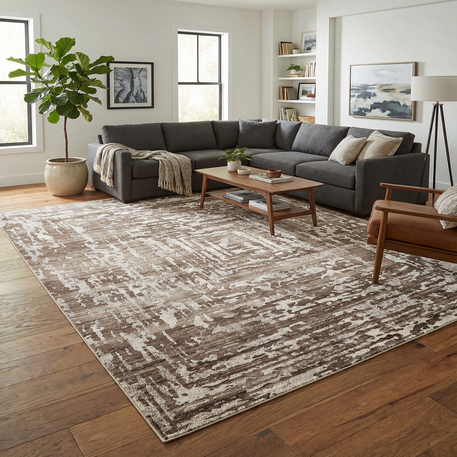 Primary color is Chocolate Brown. Colors in this rug include: Chocolate Brown, Beige, Black.