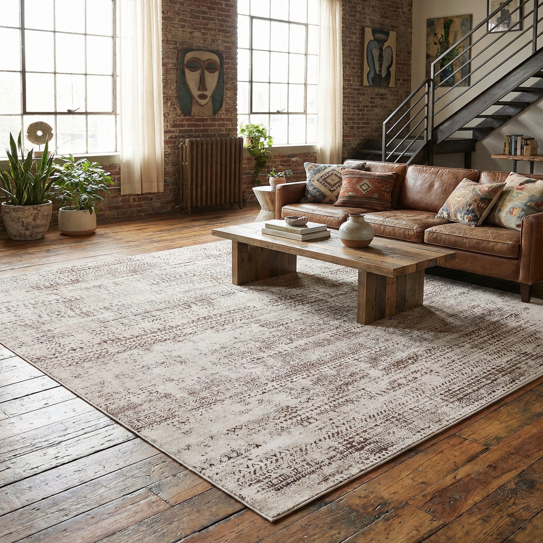 Primary color is Chocolate Brown. Colors in this rug include: Chocolate Brown, Beige.