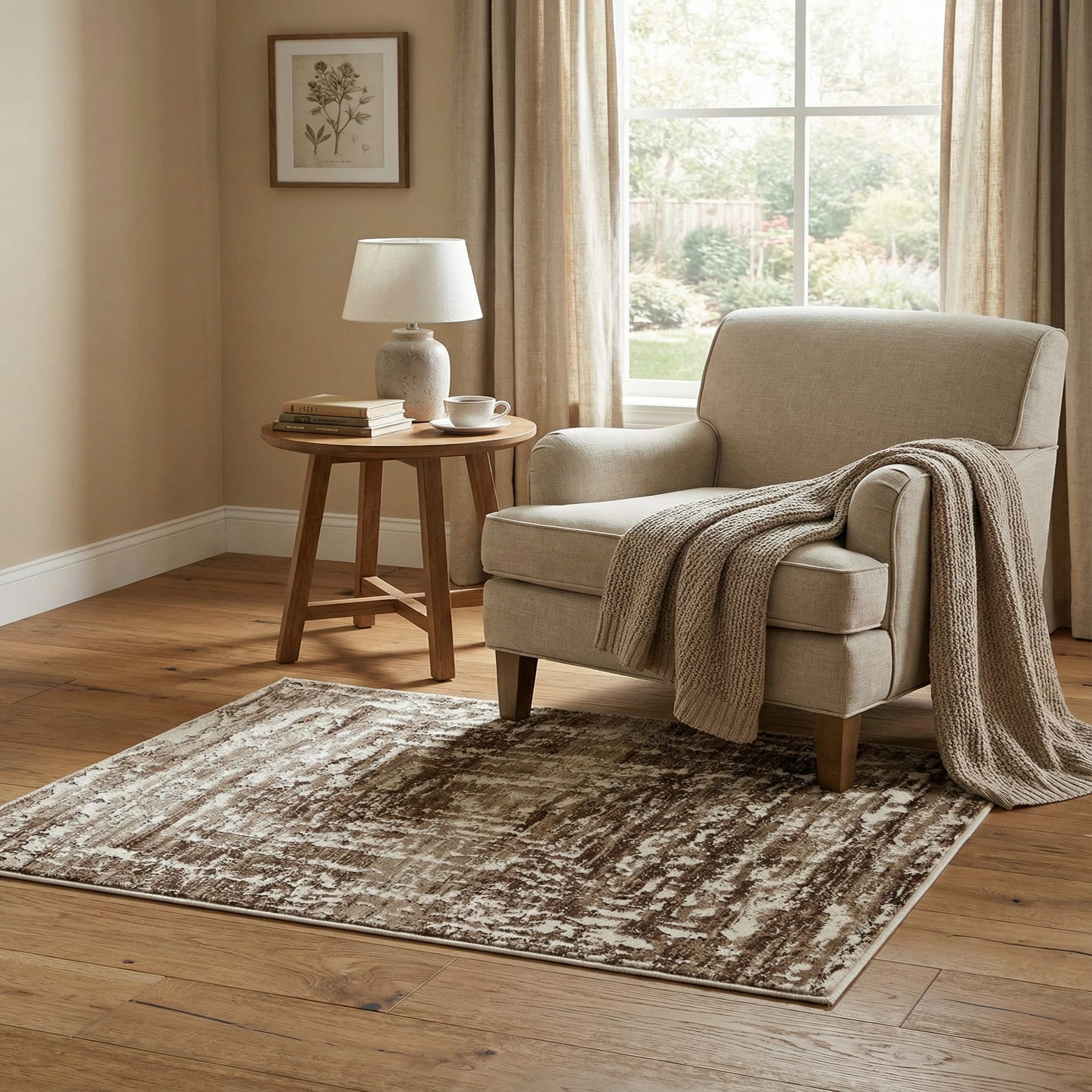 Primary color is Chocolate Brown. Colors in this rug include: Chocolate Brown, Beige, Black.