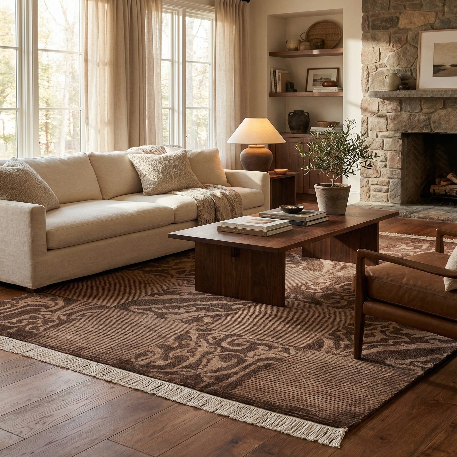 Primary color is Chocolate Brown. Colors in this rug include: Chocolate Brown, Brown.
