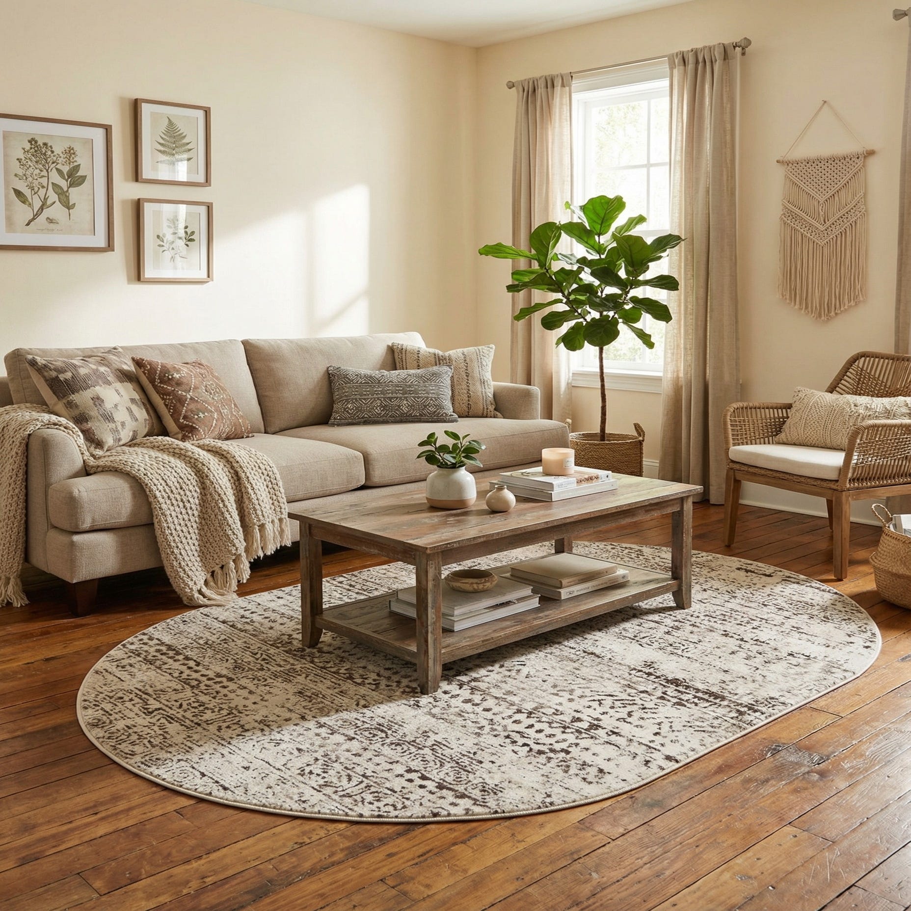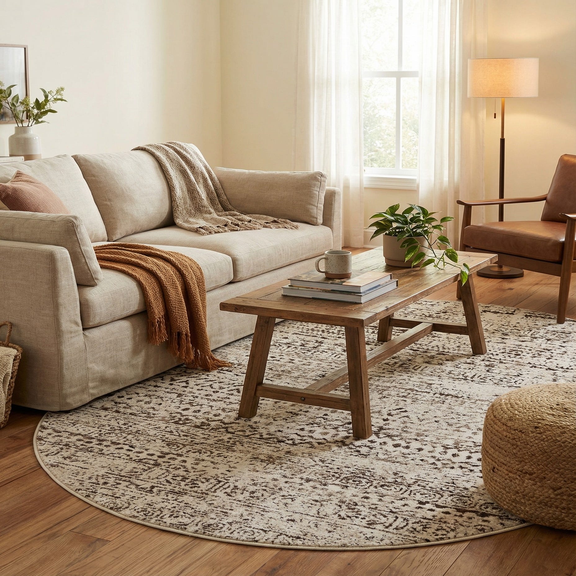 Primary color is Chocolate Brown. Colors in this rug include: Chocolate Brown, Beige.