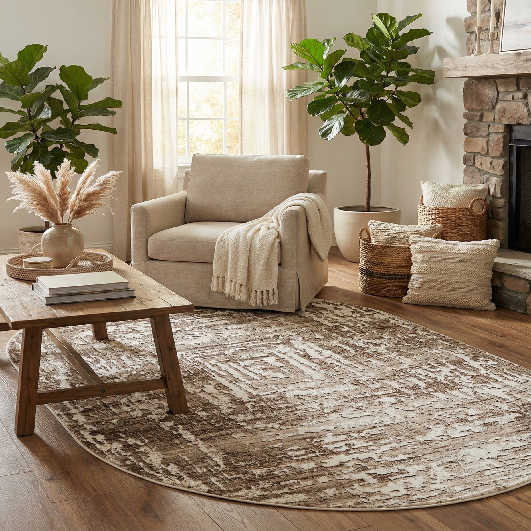 Primary color is Chocolate Brown. Colors in this rug include: Chocolate Brown, Beige, Black.