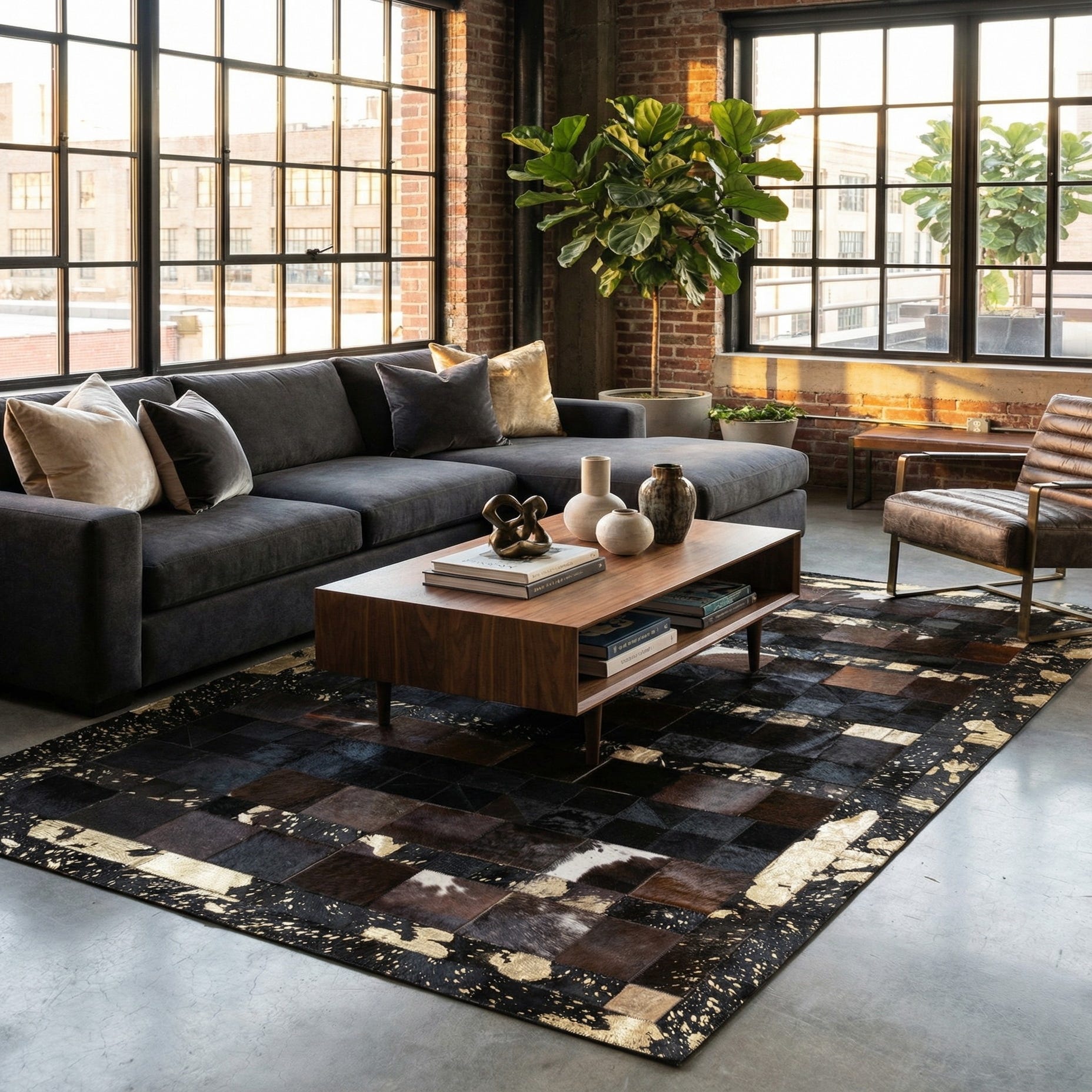 Detail image of 4' 10 x 8' Cowhide Leather Rug
