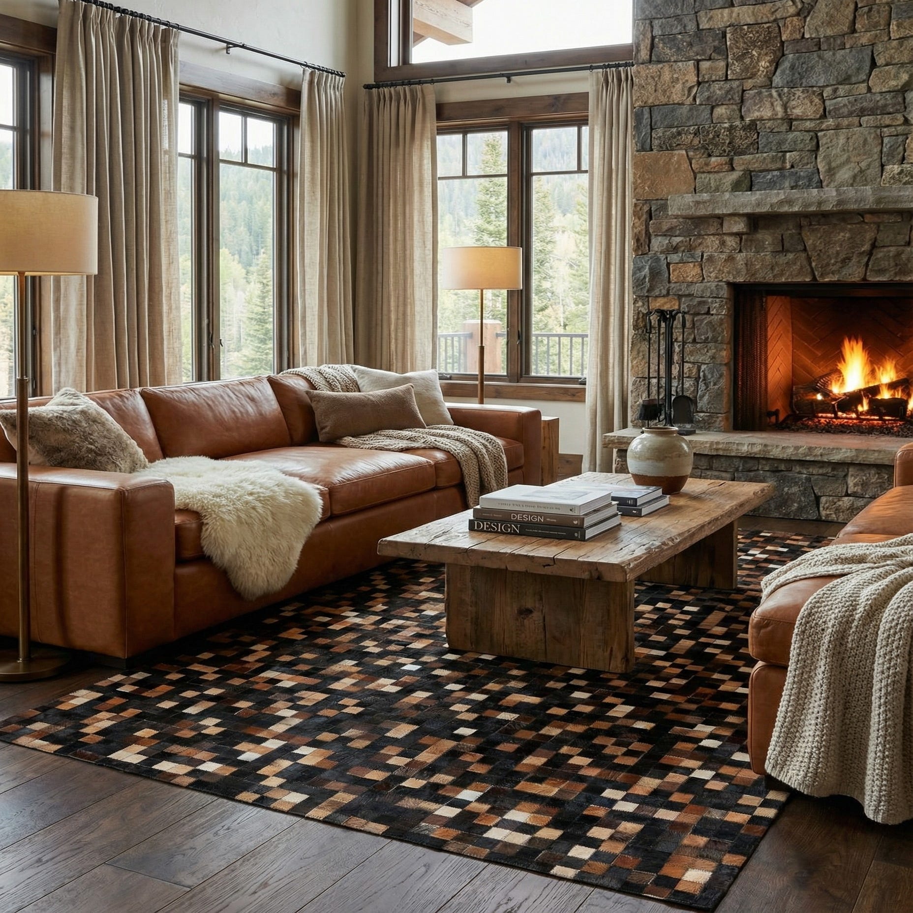 Detail image of 5' 2 x 7' 9 Cowhide Leather Rug