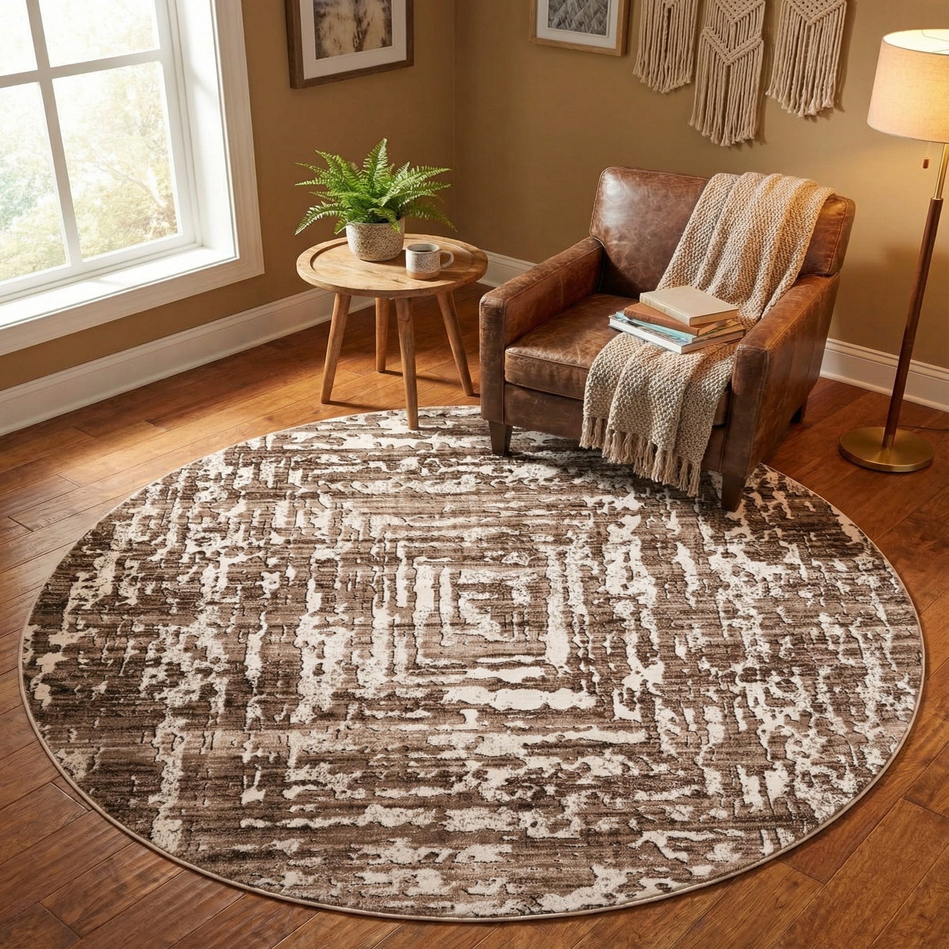 Primary color is Chocolate Brown. Colors in this rug include: Chocolate Brown, Beige, Black.