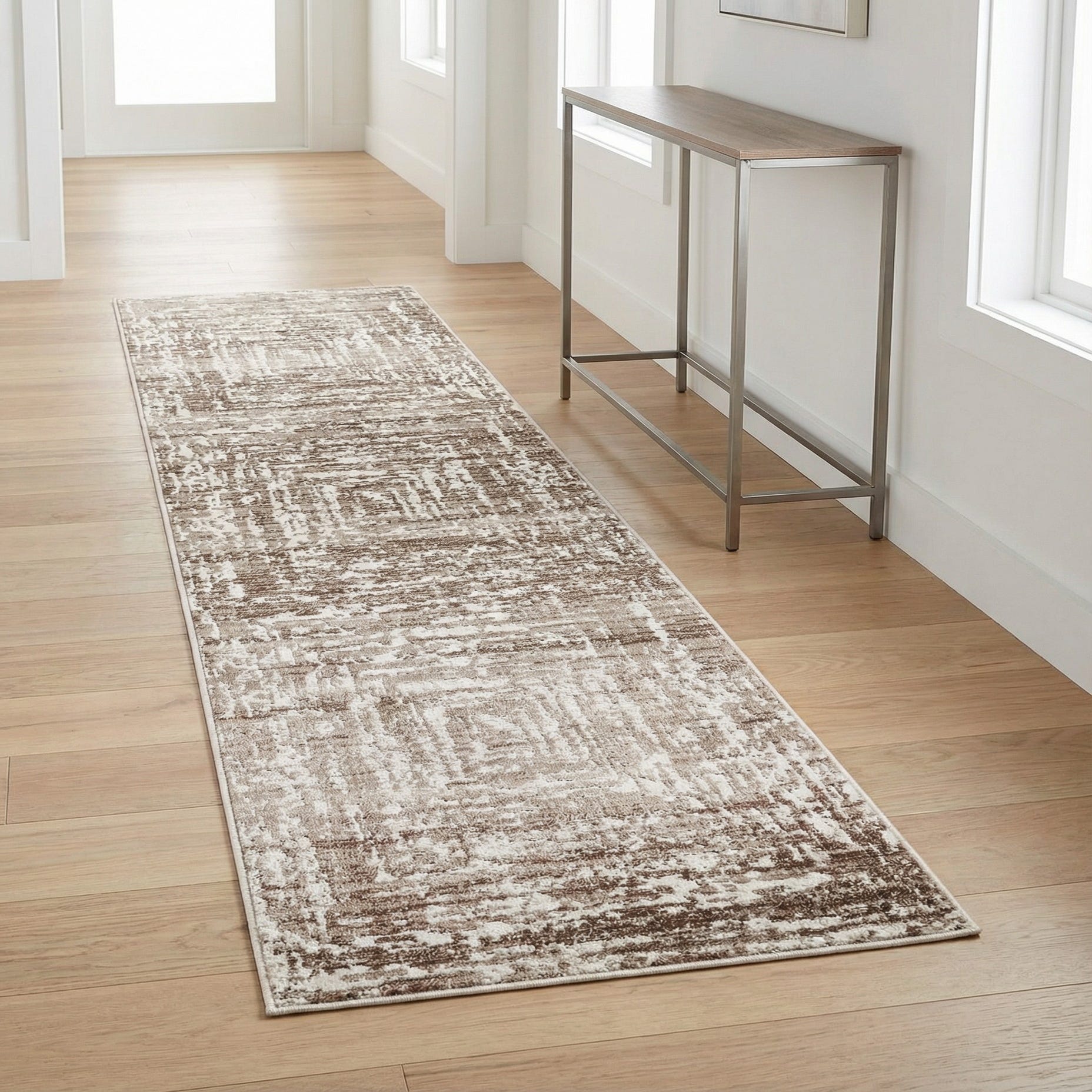 Primary color is Chocolate Brown. Colors in this rug include: Chocolate Brown, Beige, Black.