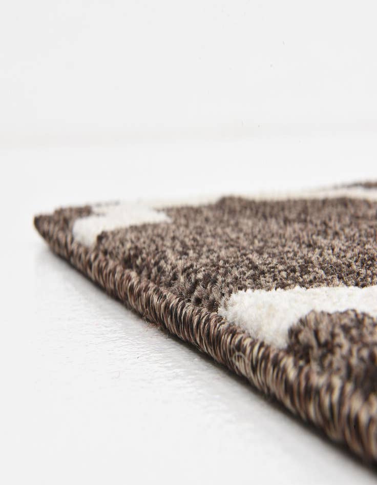 Primary color is Chocolate Brown. Colors in this rug include: Chocolate Brown, Beige.