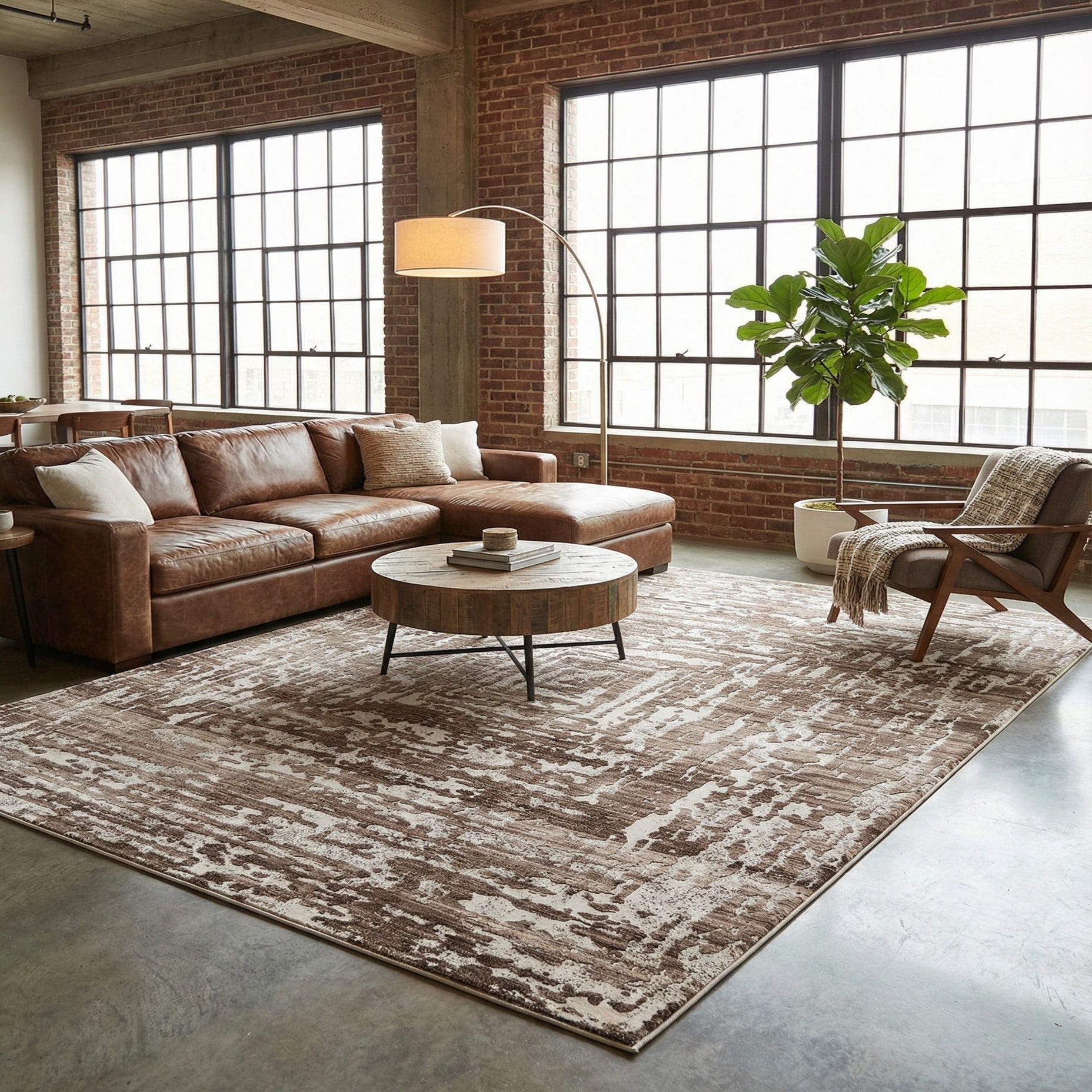 Primary color is Chocolate Brown. Colors in this rug include: Chocolate Brown, Beige, Black.