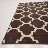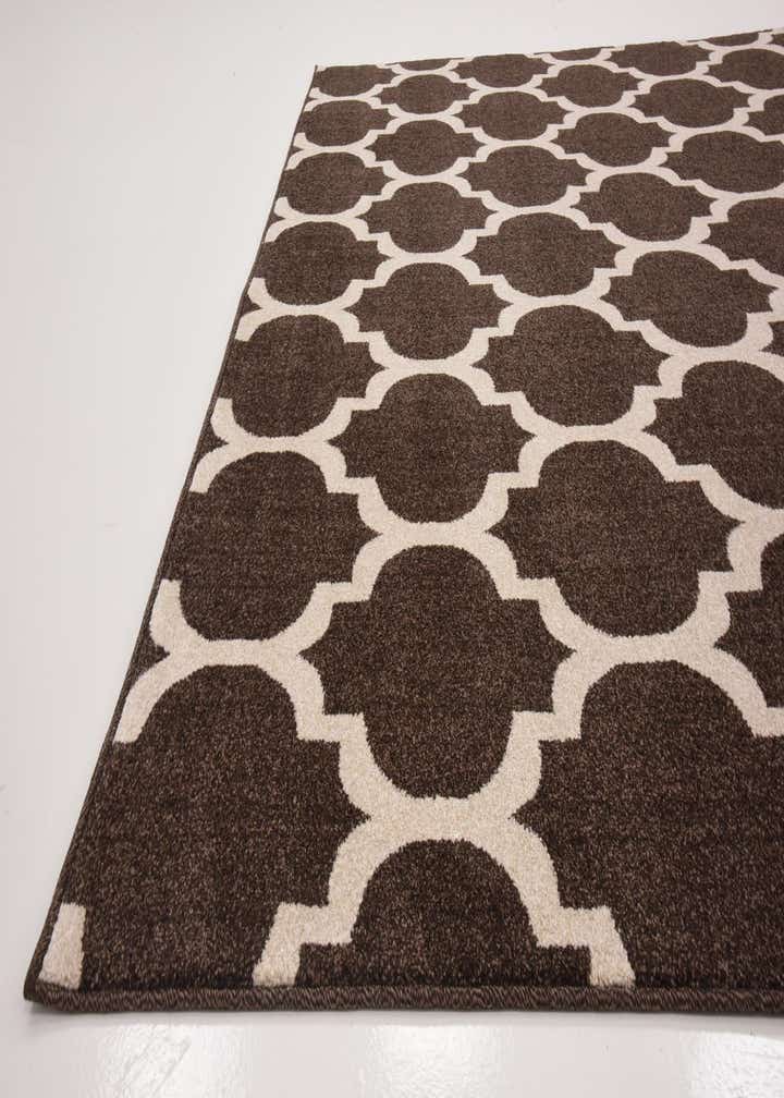 Primary color is Chocolate Brown. Colors in this rug include: Chocolate Brown, Beige.