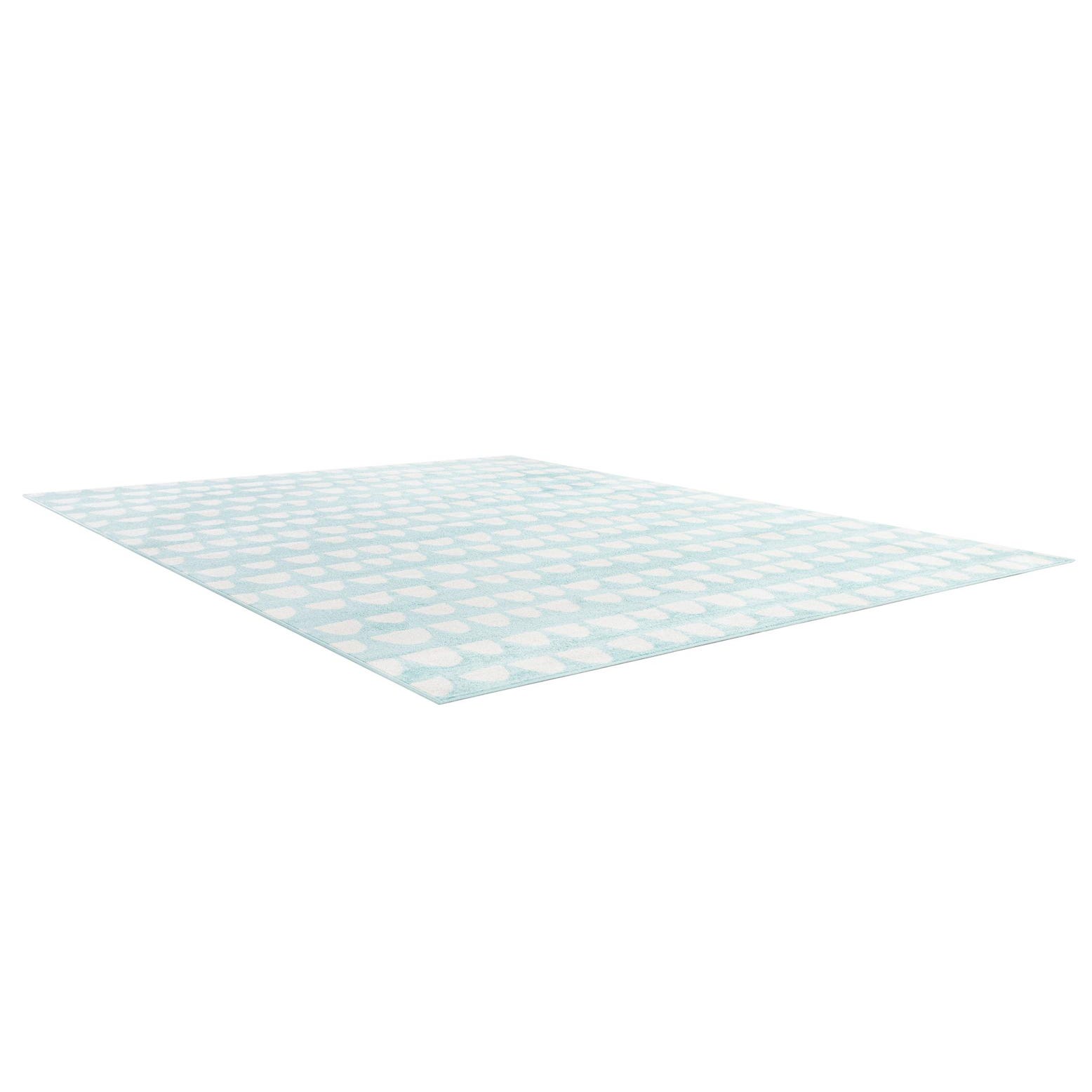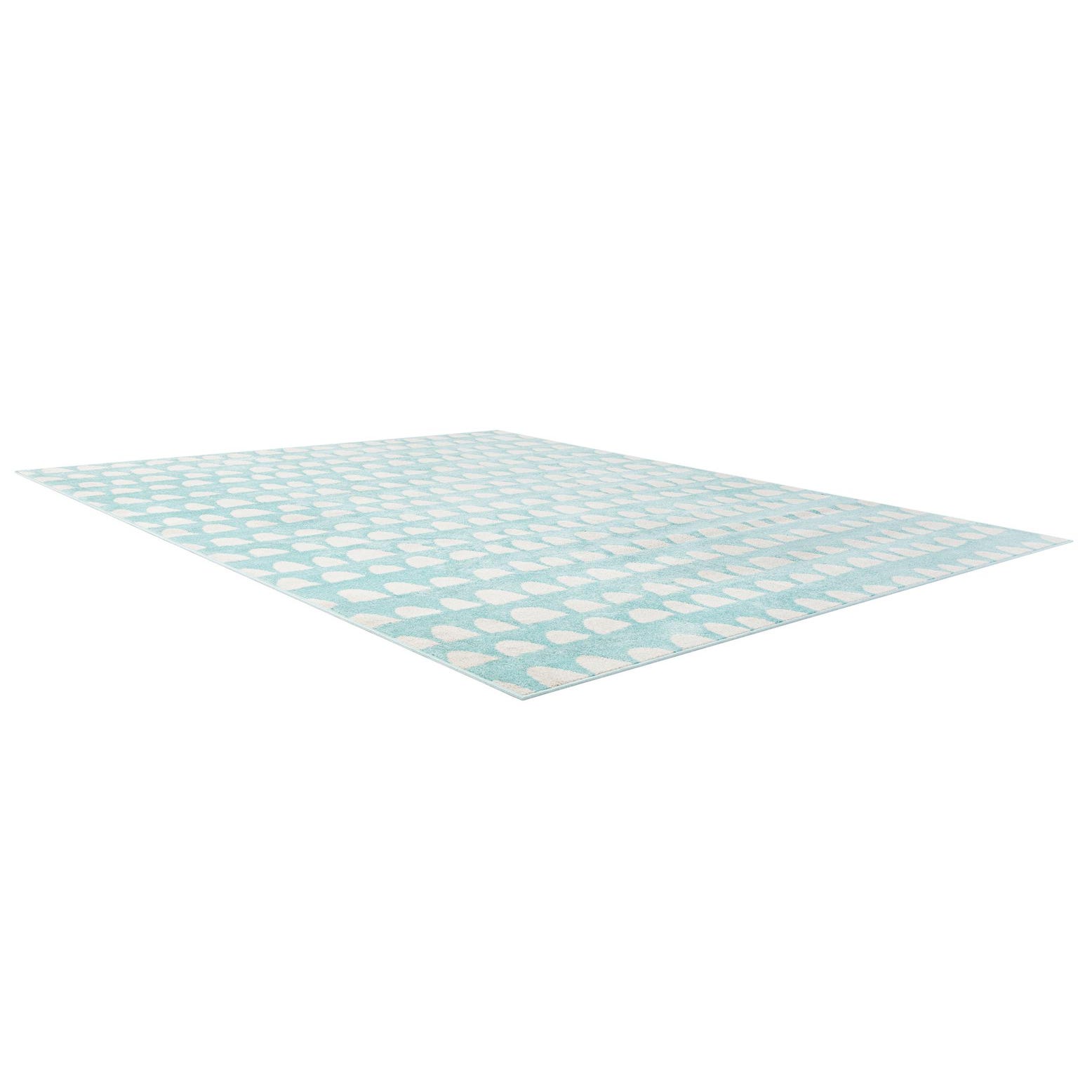 Primary color is Clear Blue. Colors in this rug include: Clear Blue, Ivory.