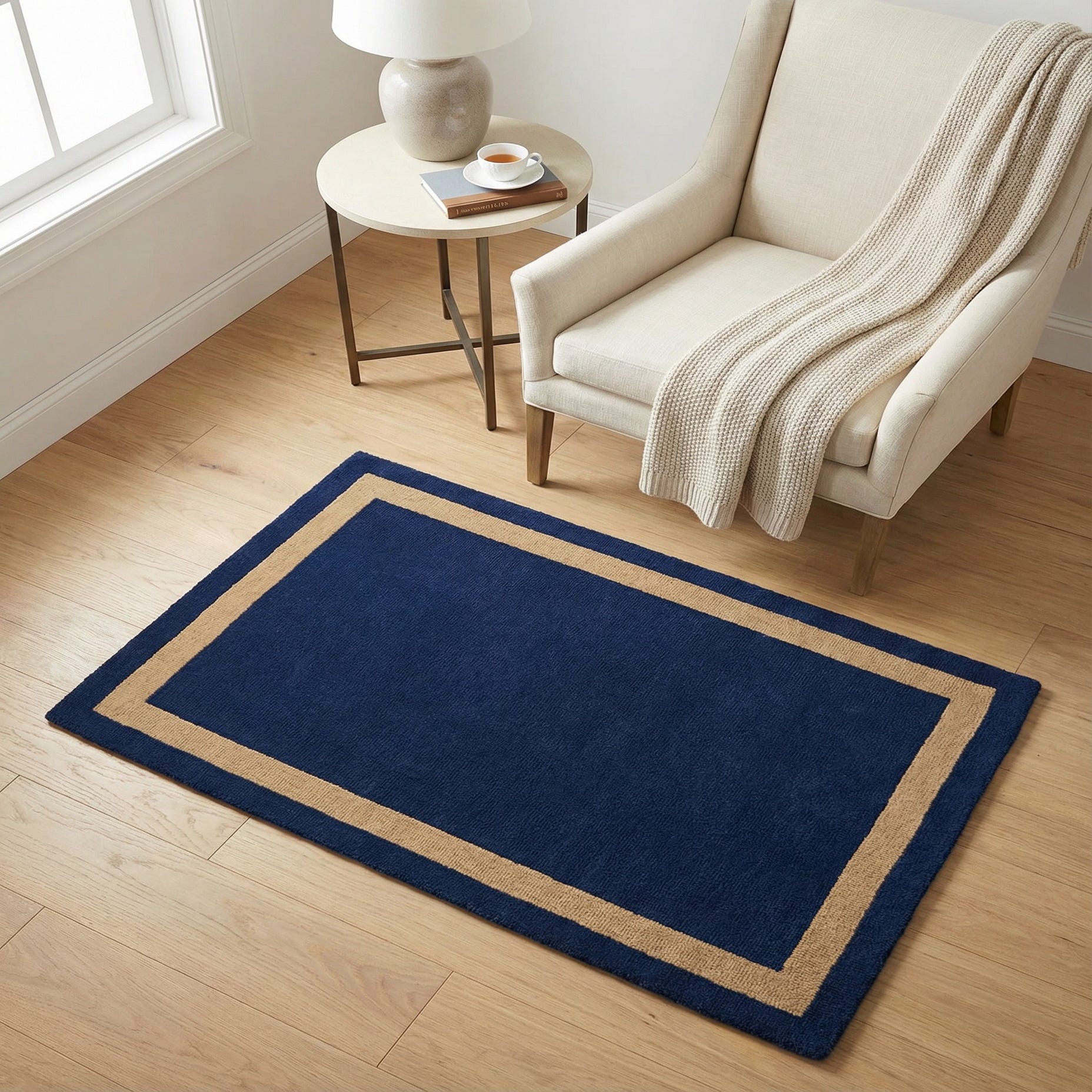 Primary color is Cobalt Blue. Colors in this rug include: Cobalt Blue, Ivory.