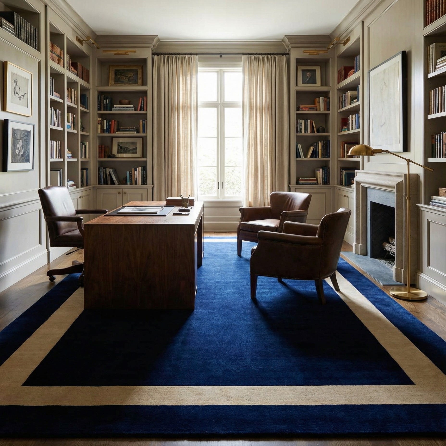 Primary color is Cobalt Blue. Colors in this rug include: Cobalt Blue, Ivory.