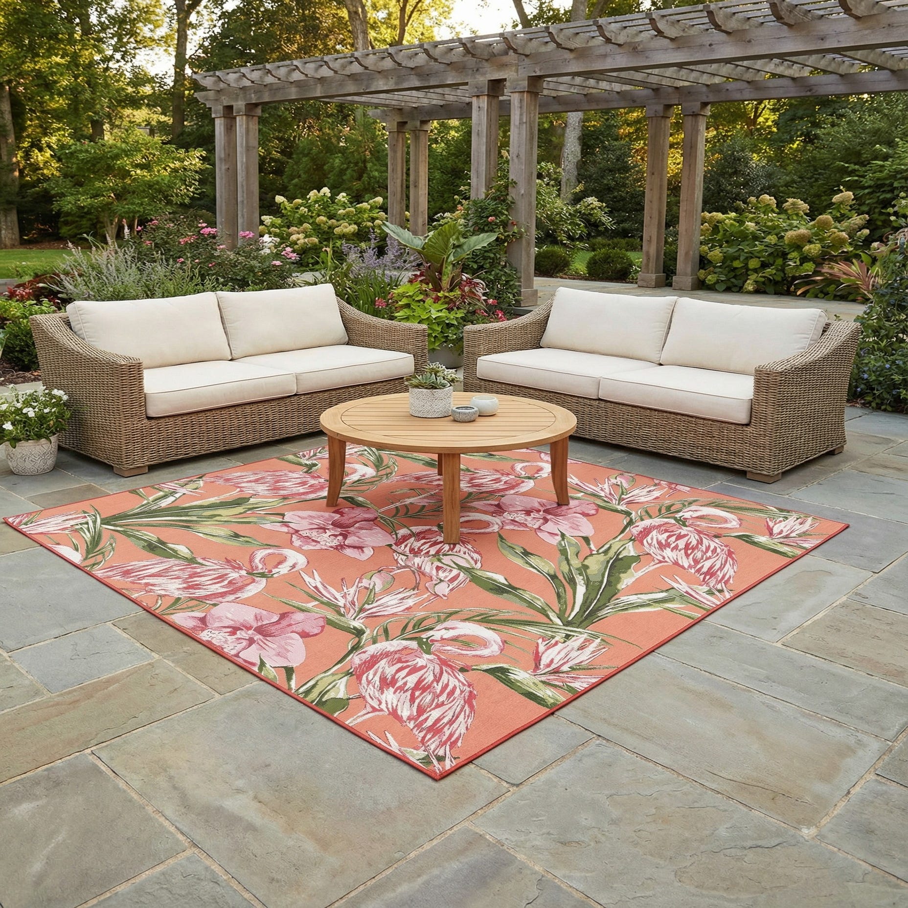 7' 10 x 7' 10 Washable Botanical Indoor / Outdoor Square Rug
