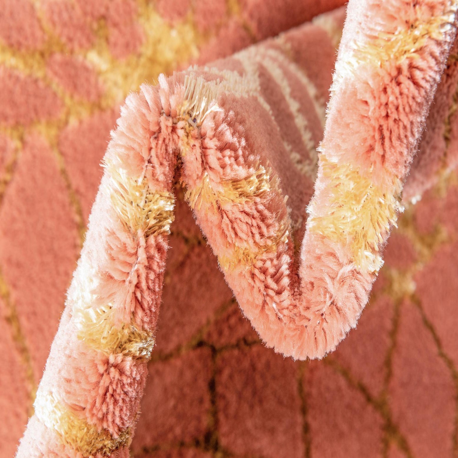 Primary color is Coral Gold. Colors in this rug include: Coral Gold, Gold.