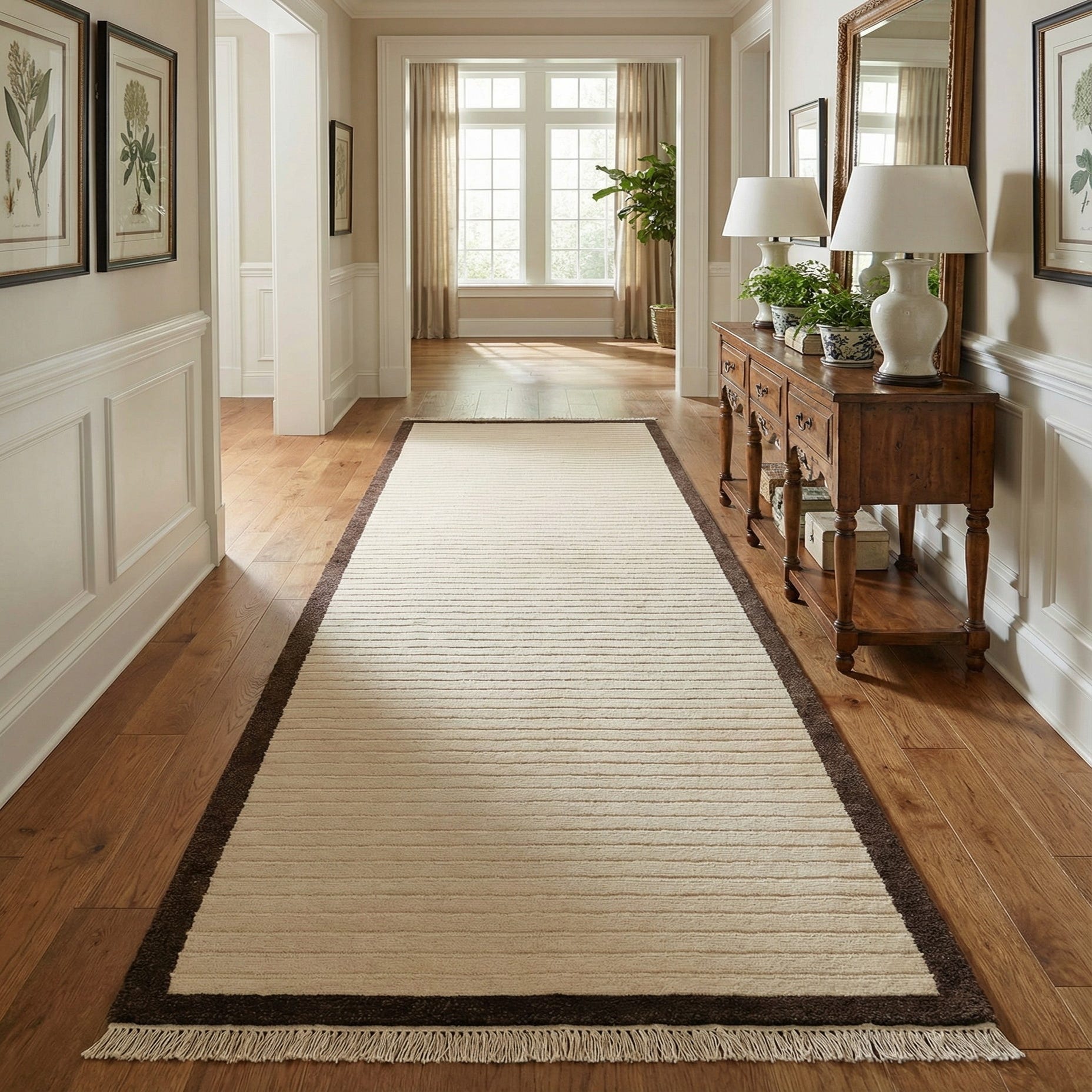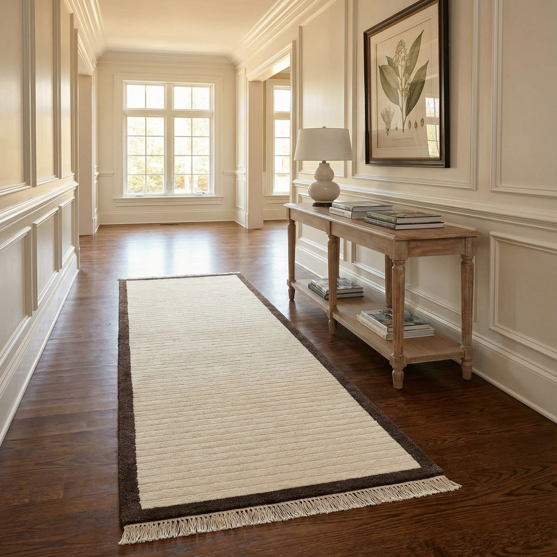 Primary color is Cream. Colors in this rug include: Cream, Beige, Brown.