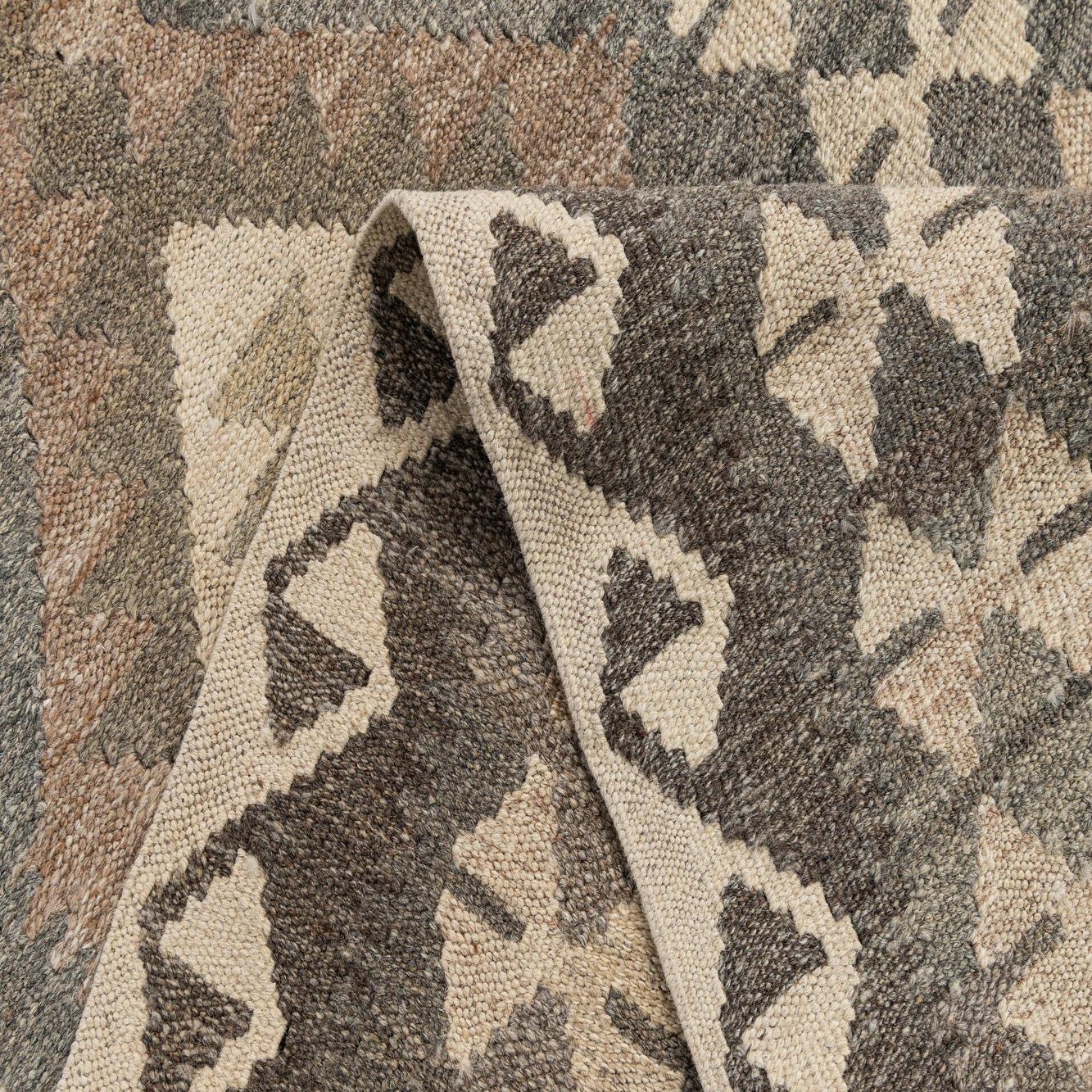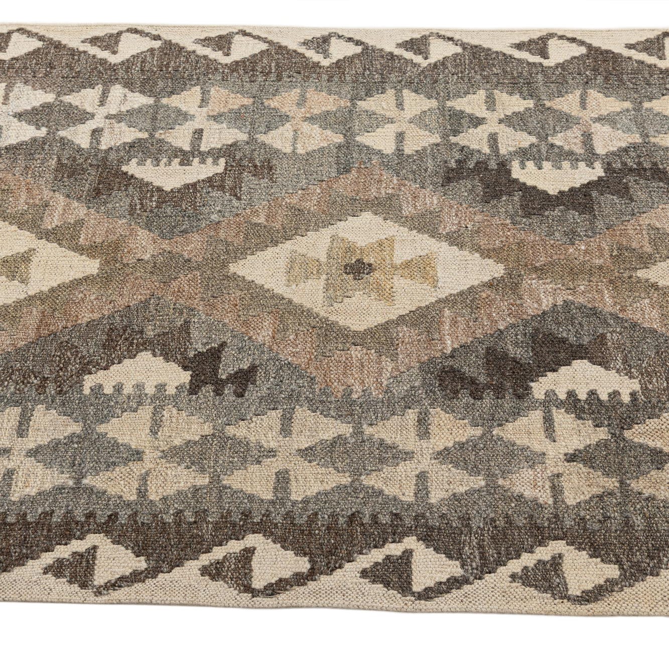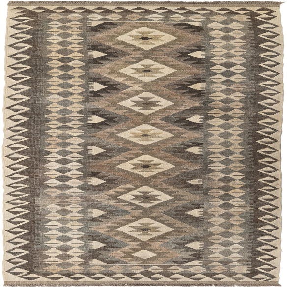 Primary color is Cream. Colors in this rug include: Cream, Brown, Gray.