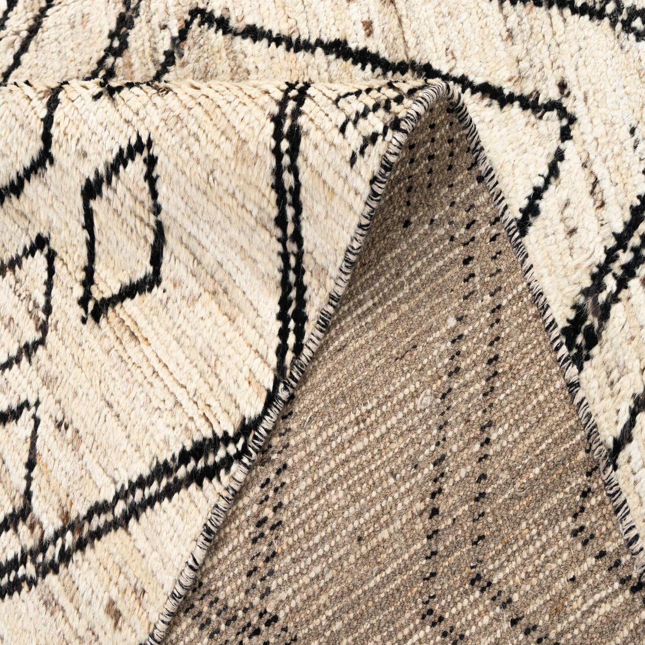 Primary color is Cream. Colors in this rug include: Cream, Black, Brown.