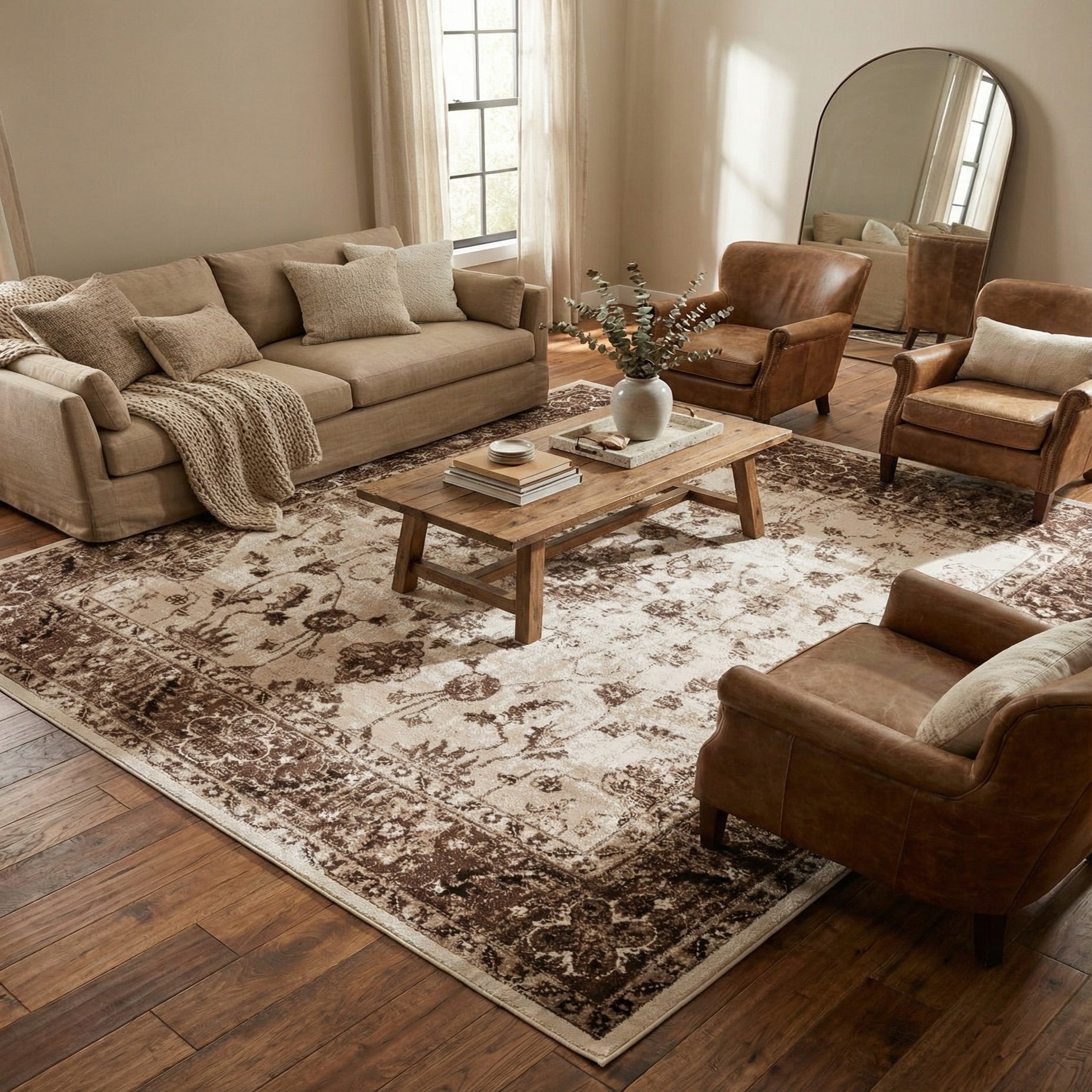Primary color is Cream. Colors in this rug include: Cream, Beige, Brown, Light Brown.