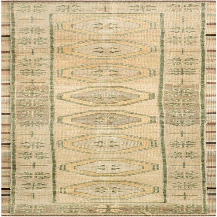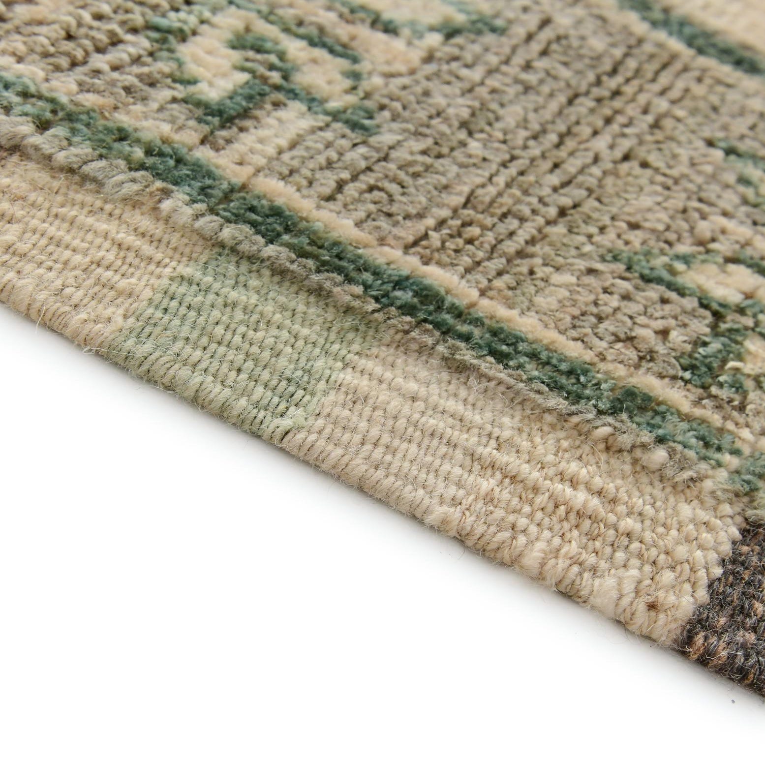 Primary color is Cream. Colors in this rug include: Cream, Green, Tan, Brown.
