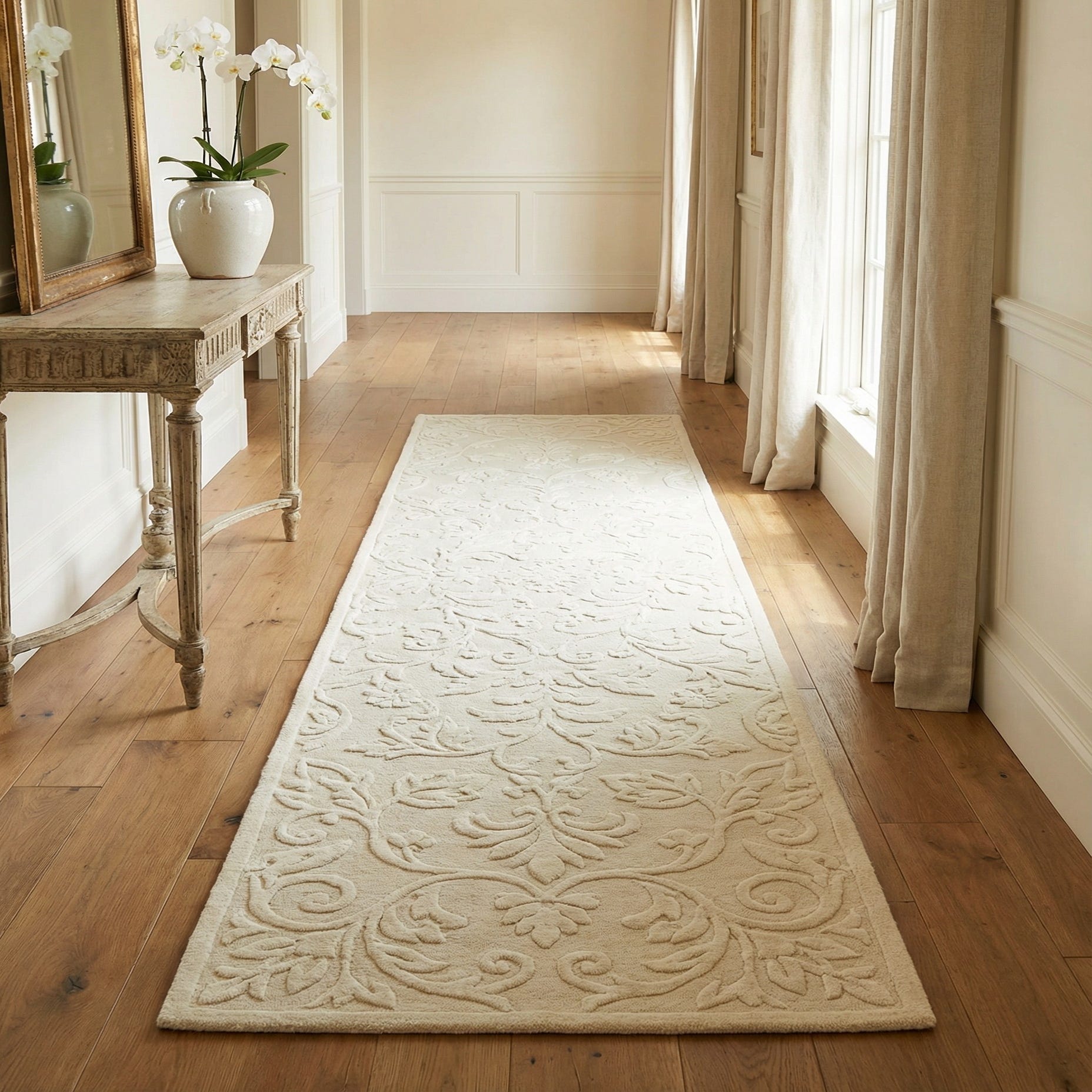 Primary color is Cream. Colors in this rug include: Cream, Beige, Ivory.