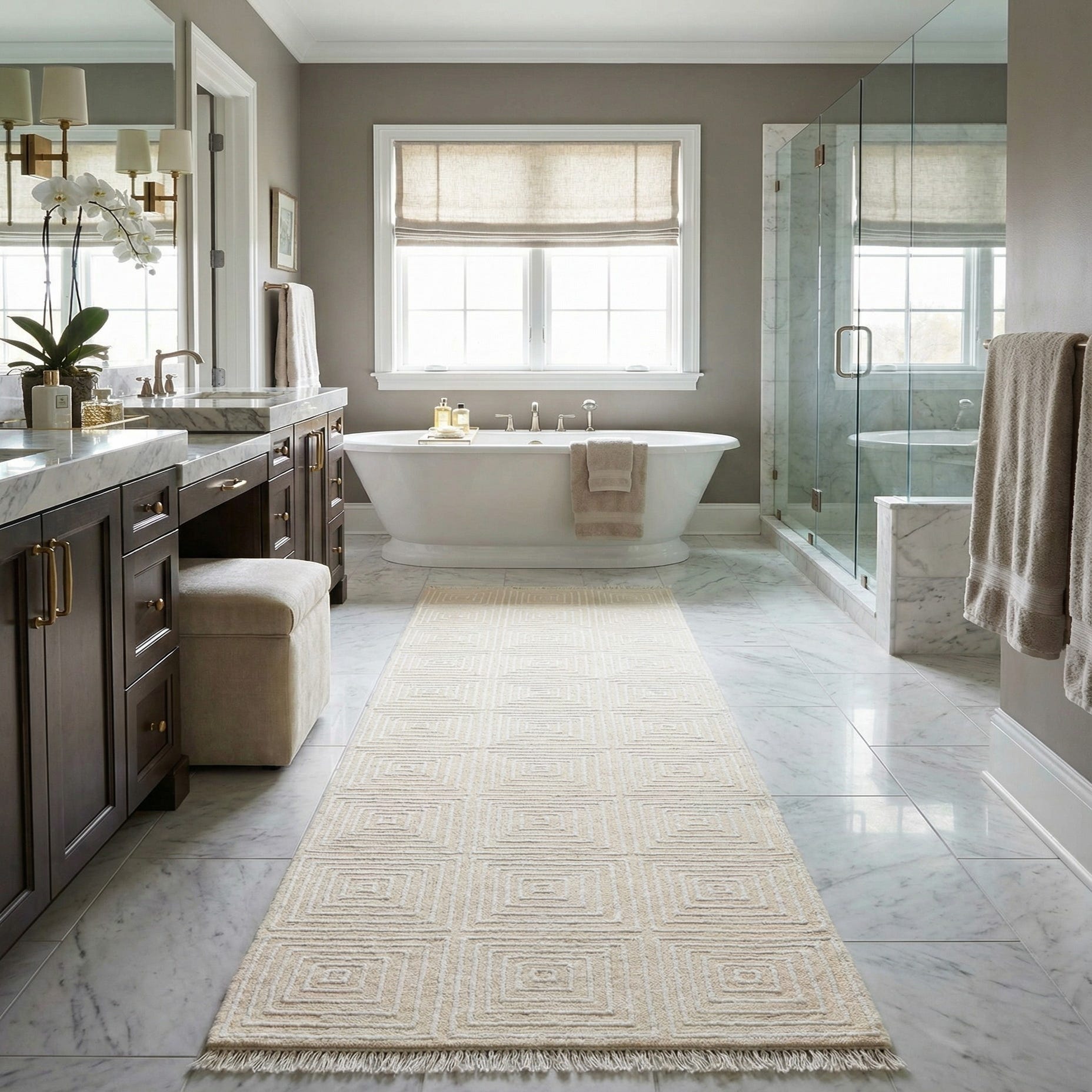 Primary color is Cream. Colors in this rug include: Cream, Beige, Ivory.