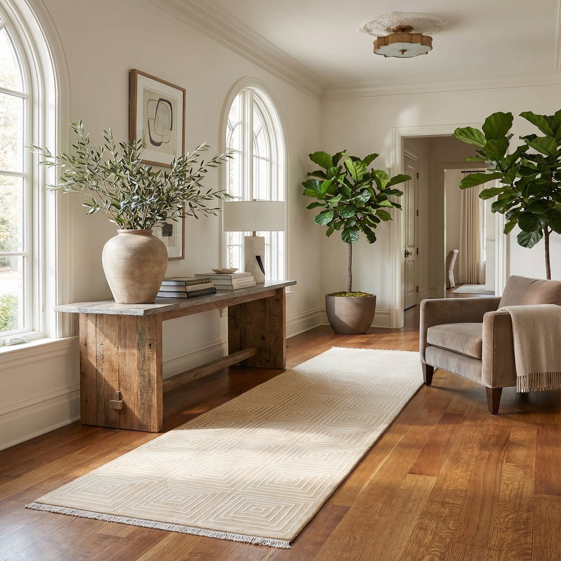 Primary color is Cream. Colors in this rug include: Cream, Ivory.