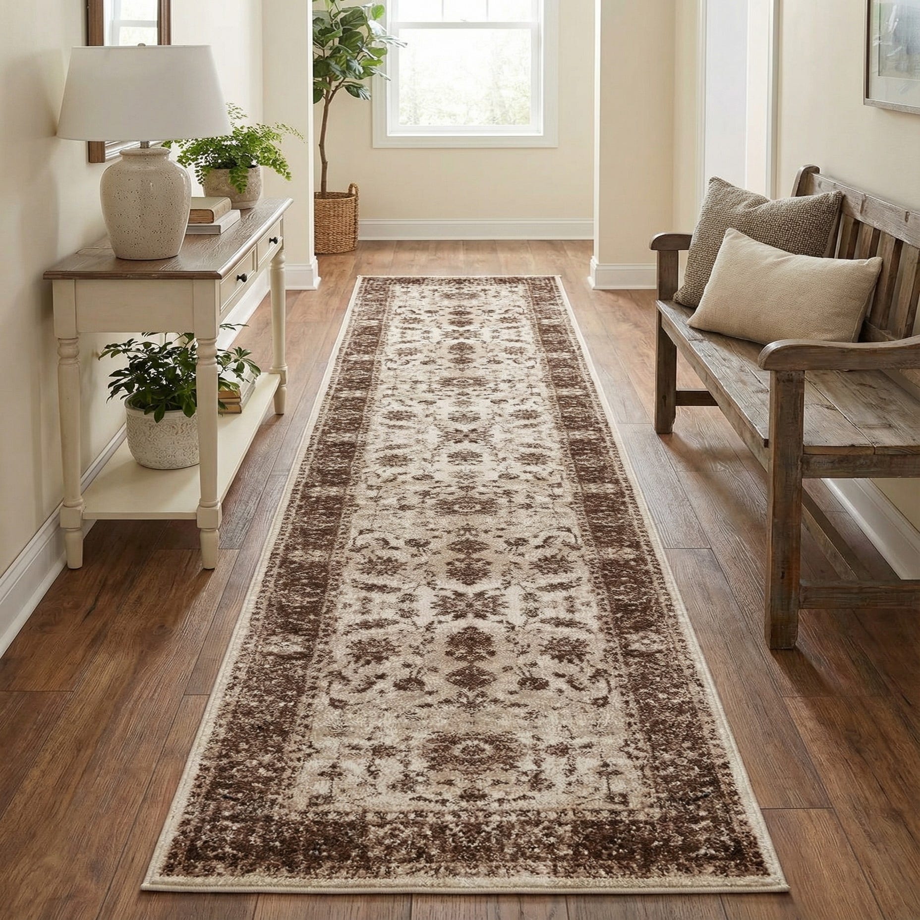Primary color is Cream. Colors in this rug include: Cream, Beige, Brown, Light Brown.