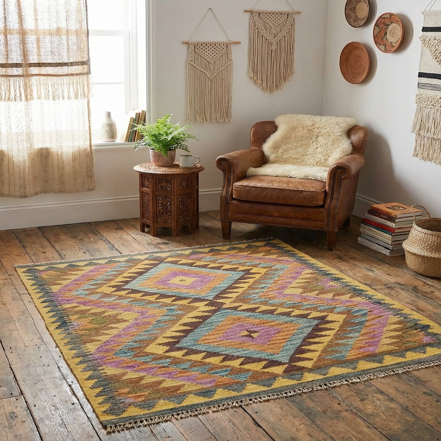 3' x 3' 6 Hand Woven Kilim Maymana Wool Square Rug