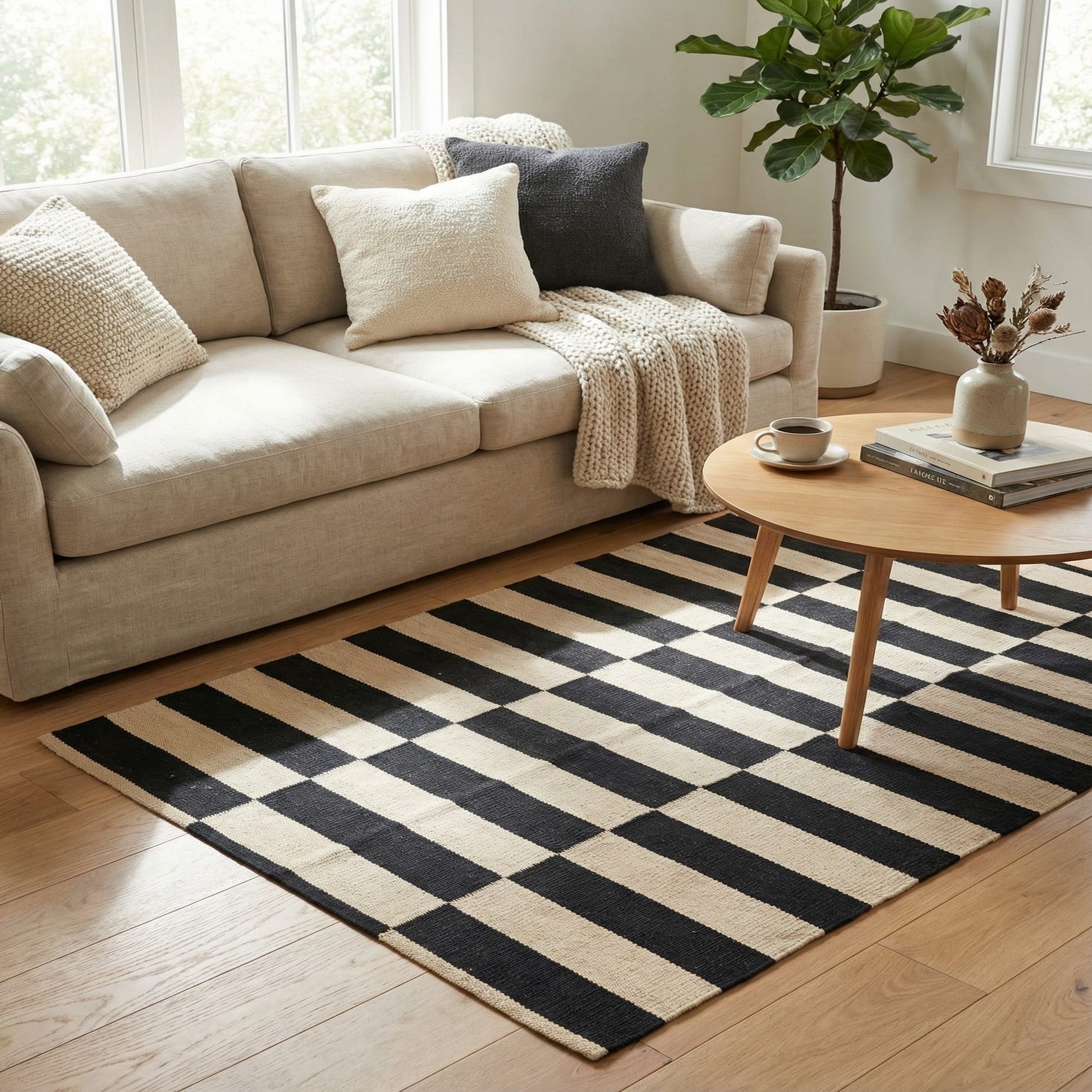 Primary color is Cream. Colors in this rug include: Cream, Black.