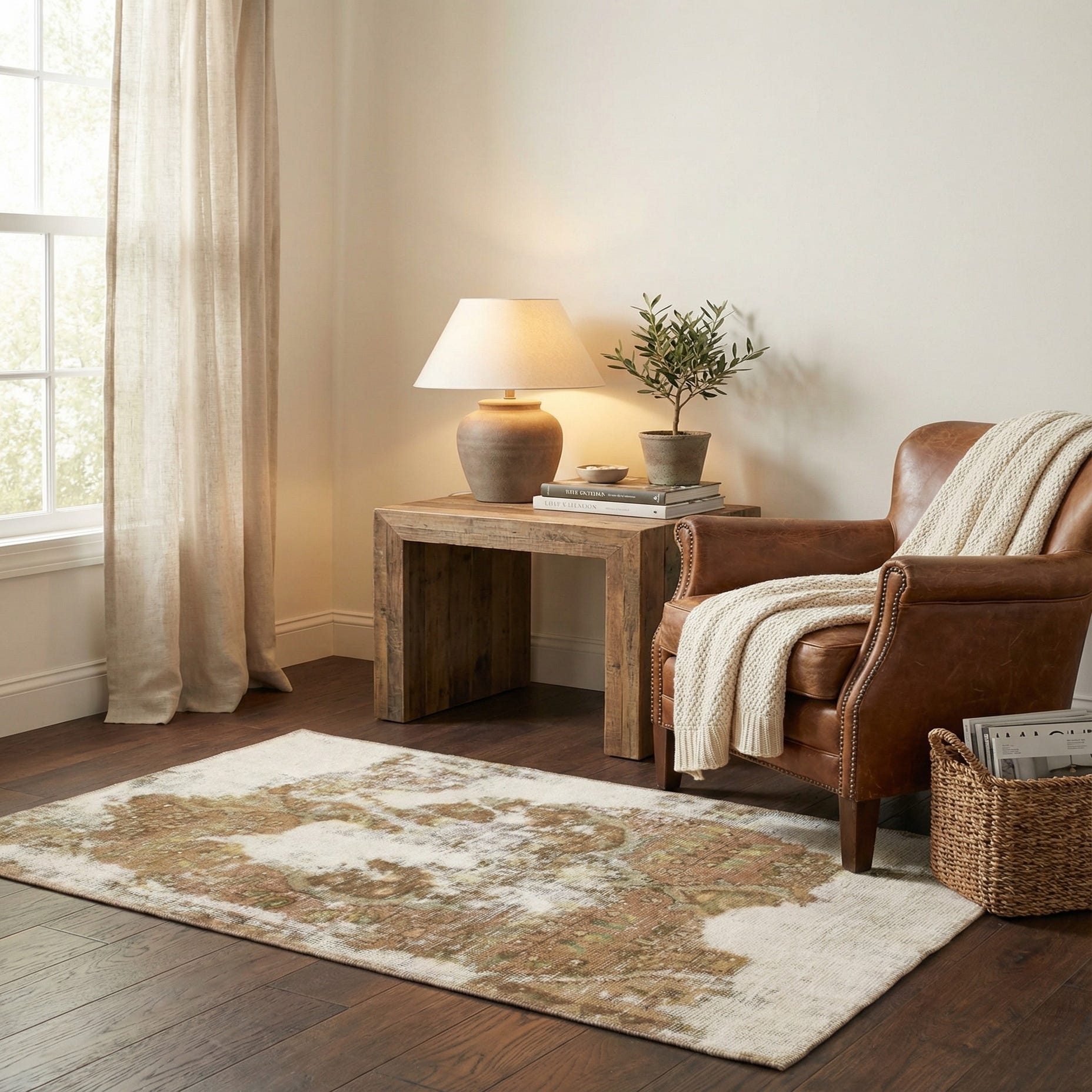 Primary color is Cream. Colors in this rug include: Cream, Brown, Light Brown, Beige, Tan, Olive.