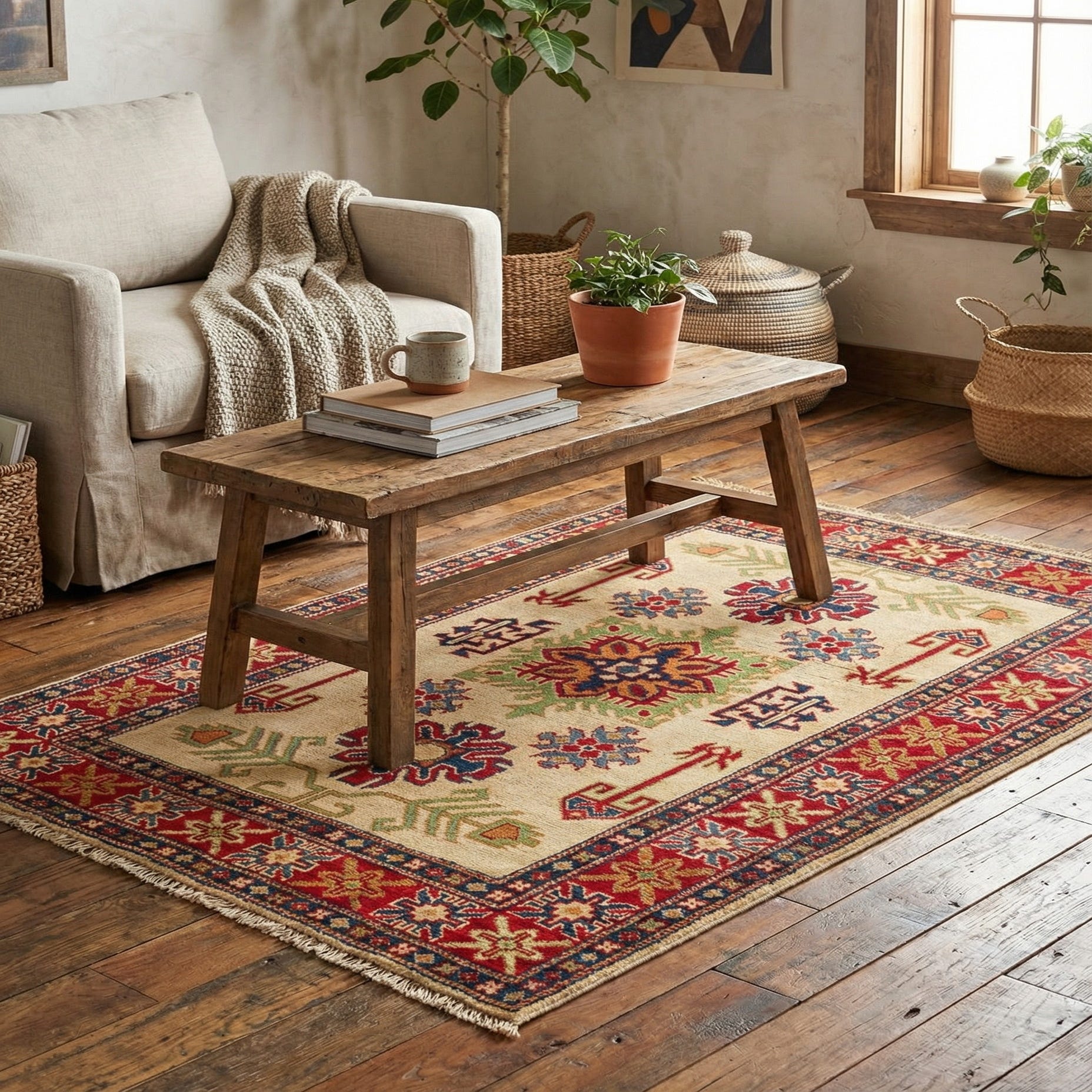 3' 5 x 4' 10 Hand Knotted Kazak Rug