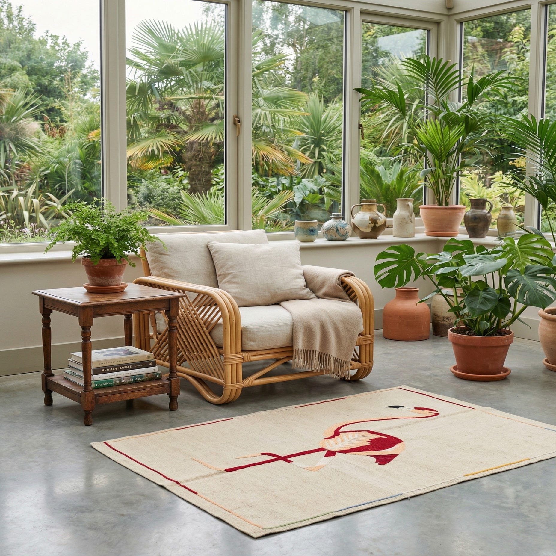 Primary color is Cream. Colors in this rug include: Cream, Black, Peach, Red, Gray.