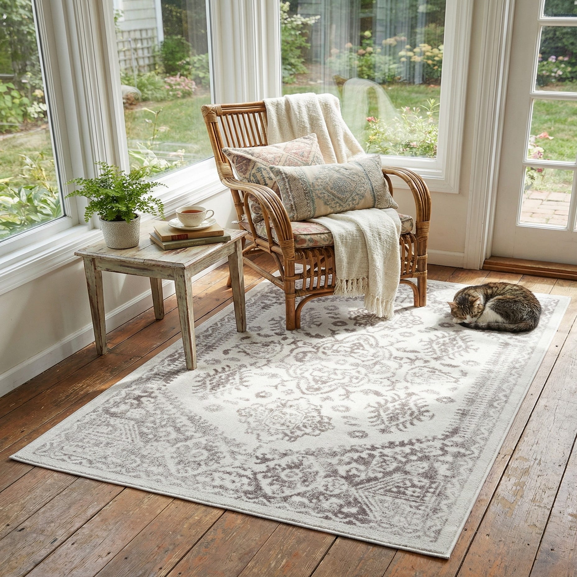 Primary color is Cream. Colors in this rug include: Cream, Ivory.