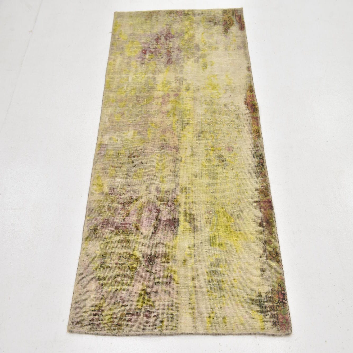 This Persian Ultra Vintage rug is an antique Persian Rug that has been washed, over-dyed, and then shaved down to a low pile. Look at the detail pictures to fully appreciate the uniqueness of this piece.
