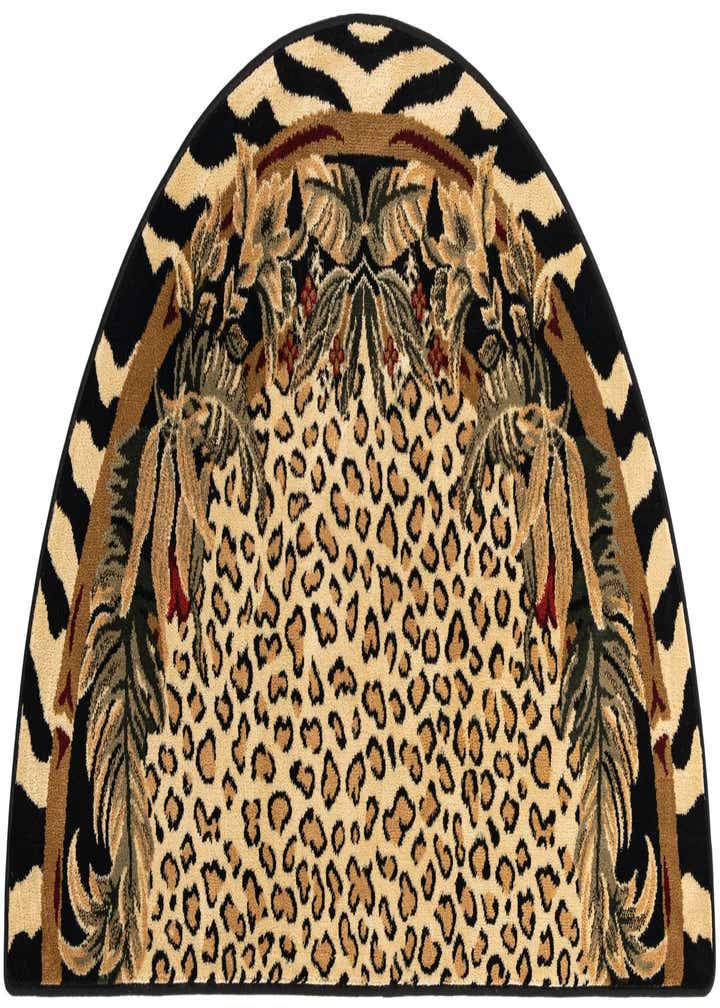 Primary color is Cream. Colors in this rug include: Cream, Black, Green, Red.