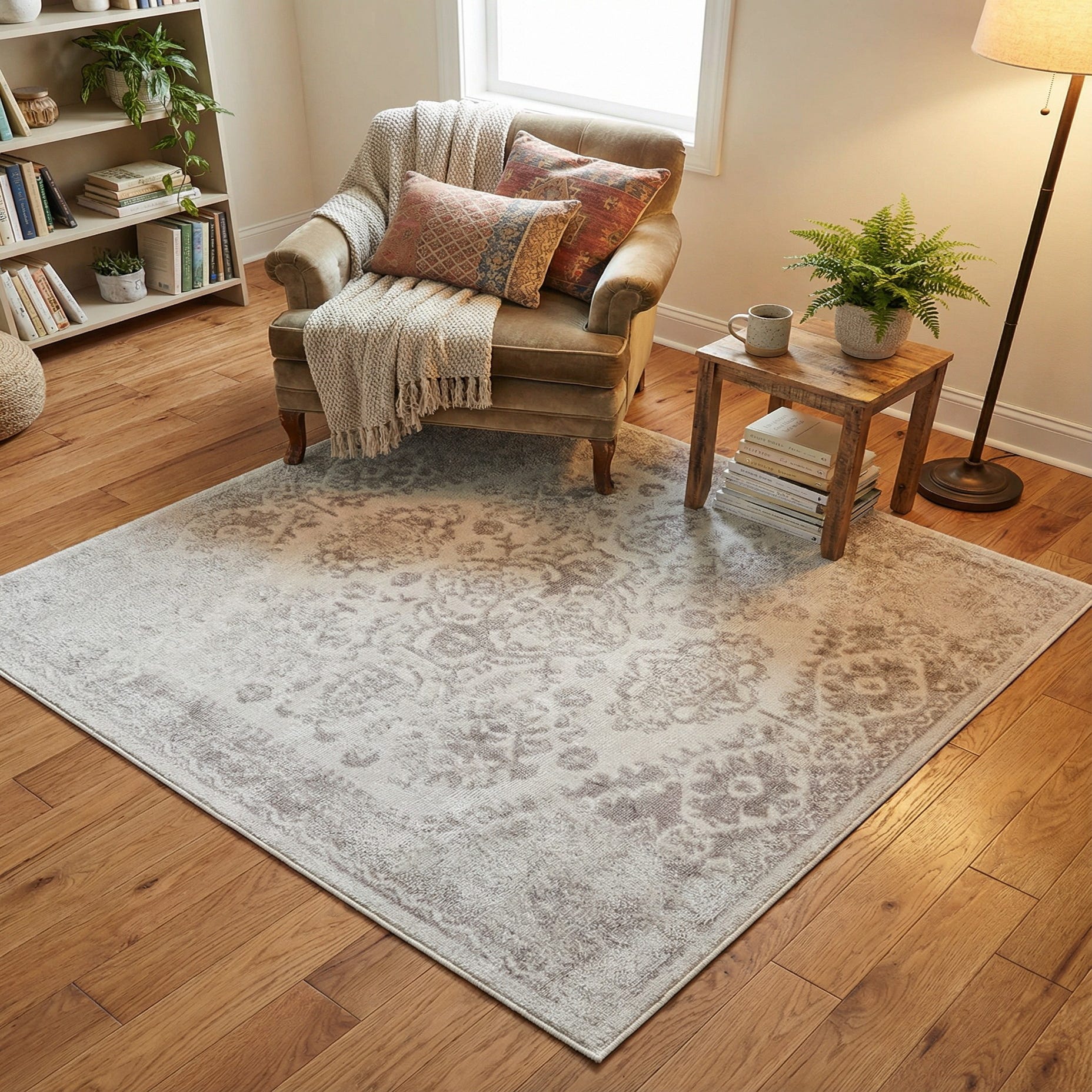 Primary color is Cream. Colors in this rug include: Cream, Ivory.