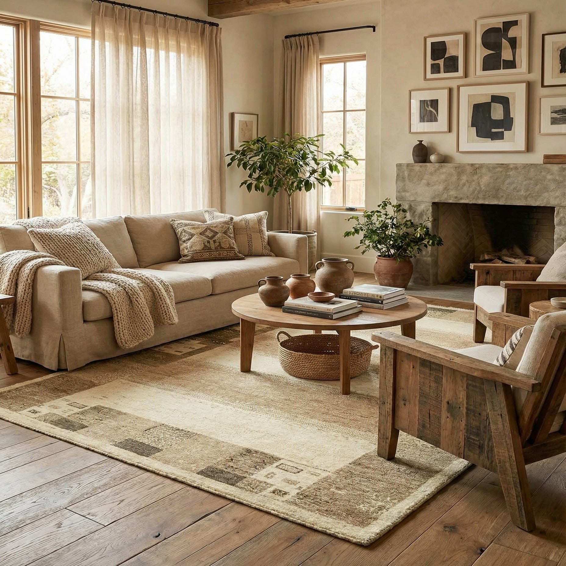 Primary color is Cream. Colors in this rug include: Cream, Beige, Brown, Light Brown.