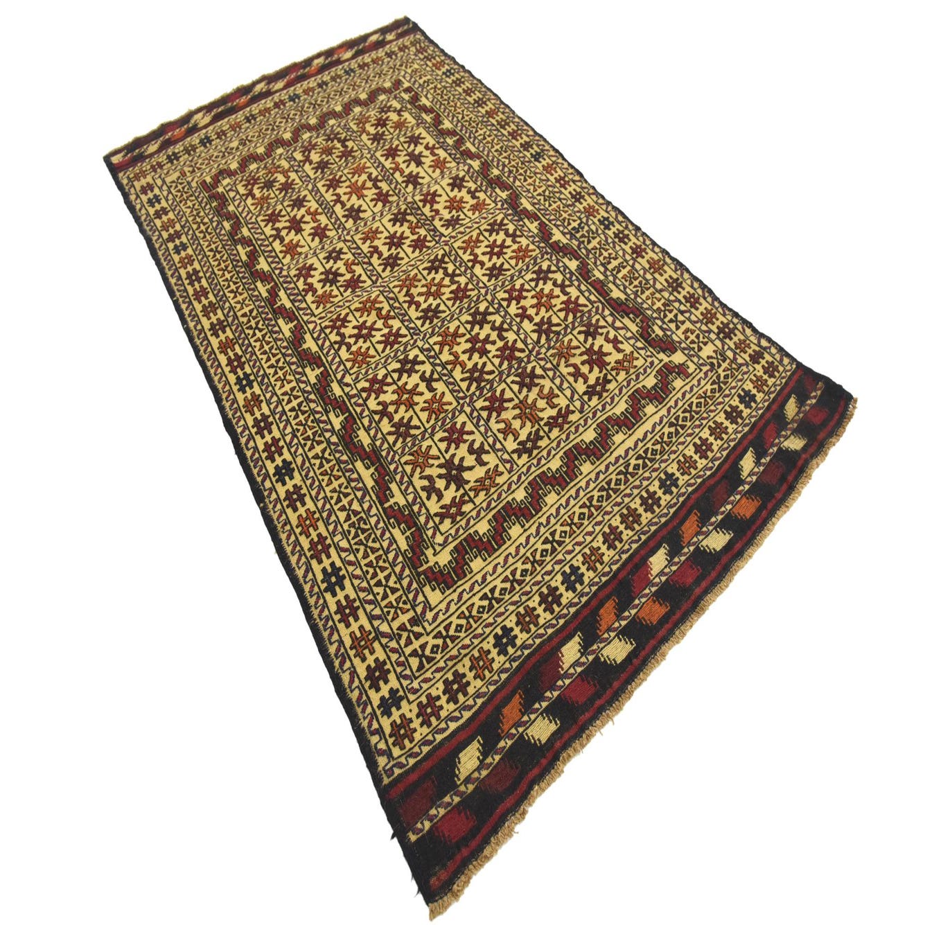 Primary color is Cream. Colors in this rug include: Cream, Black, Burgundy, Brown, Orange.