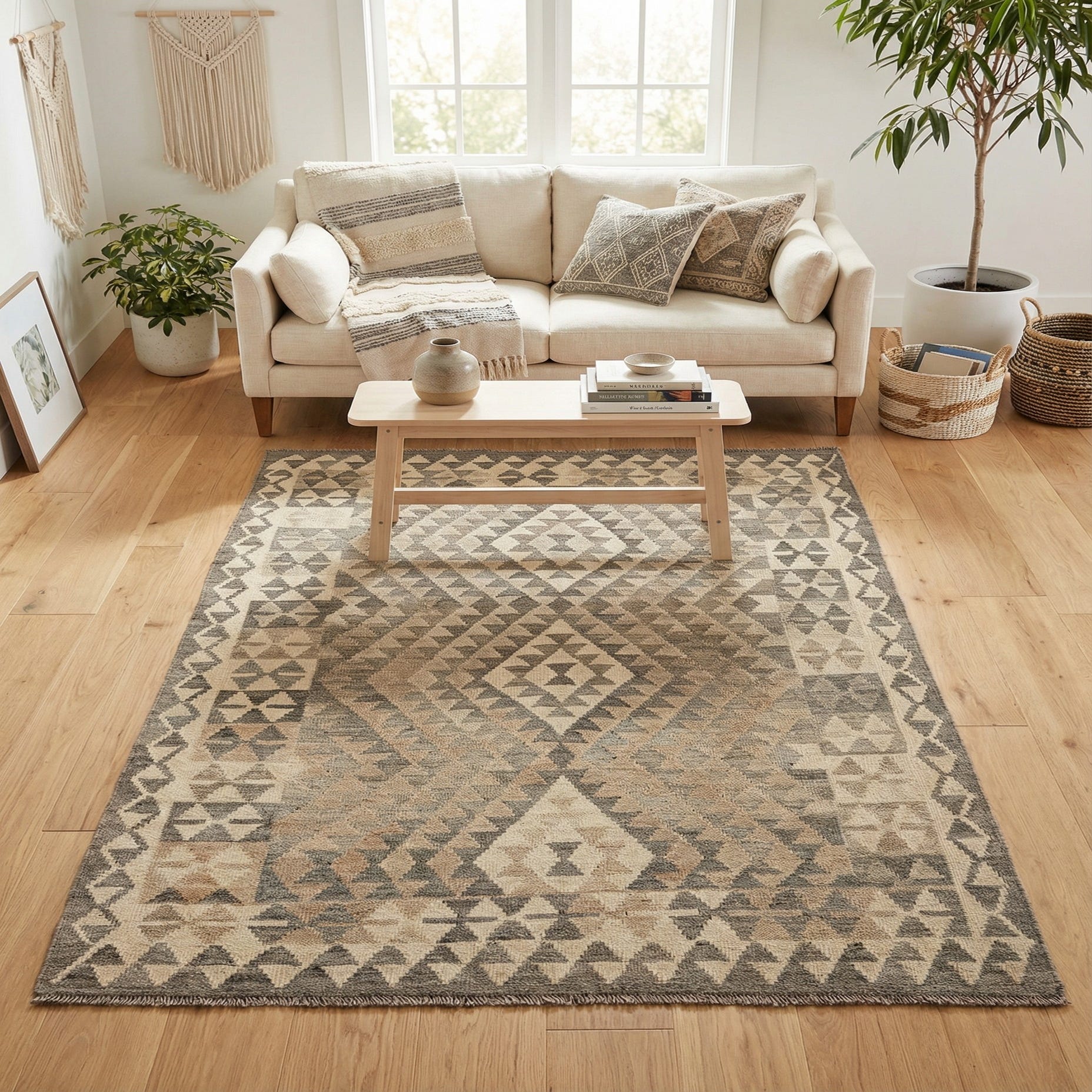Primary color is Cream. Colors in this rug include: Cream, Beige, Brown, Gray.