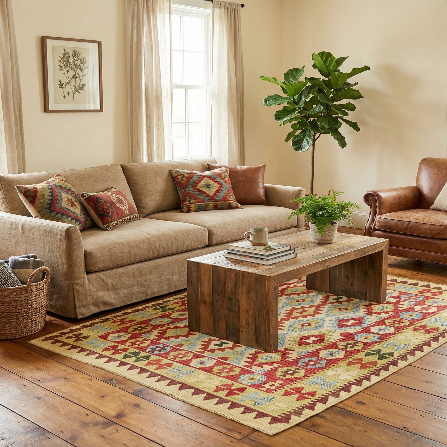 4' 10 x 6' 3 Hand Woven Kilim Maymana Wool Rug