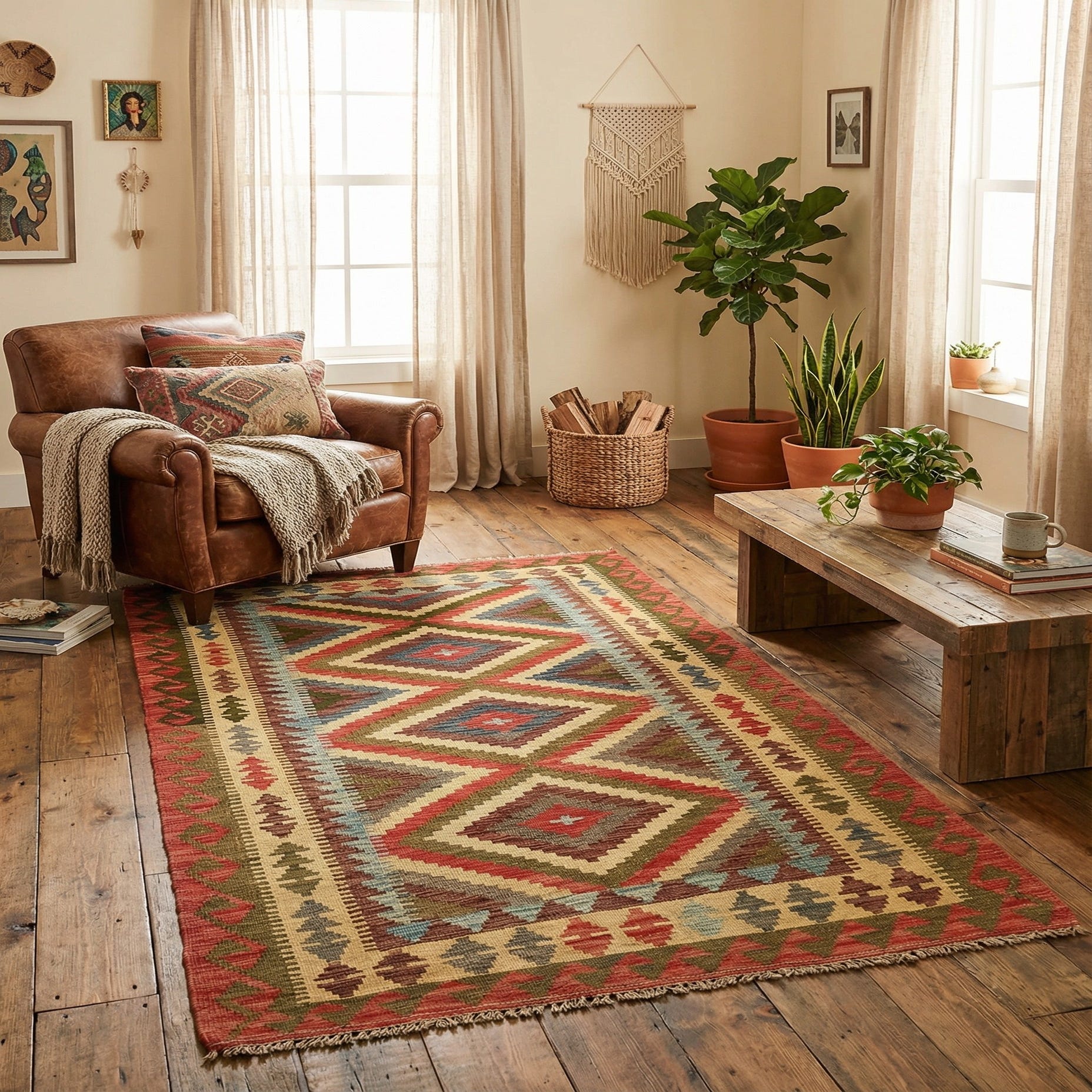 3' 6 x 6' Hand Woven Kilim Maymana Wool Rug