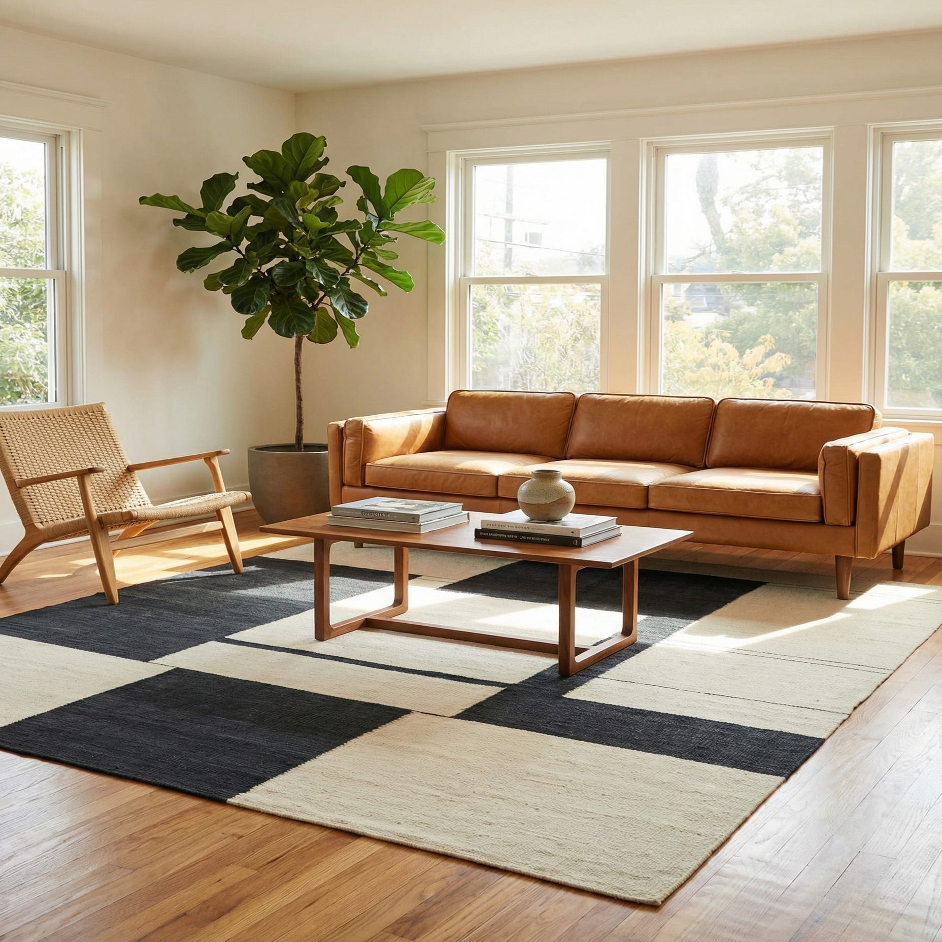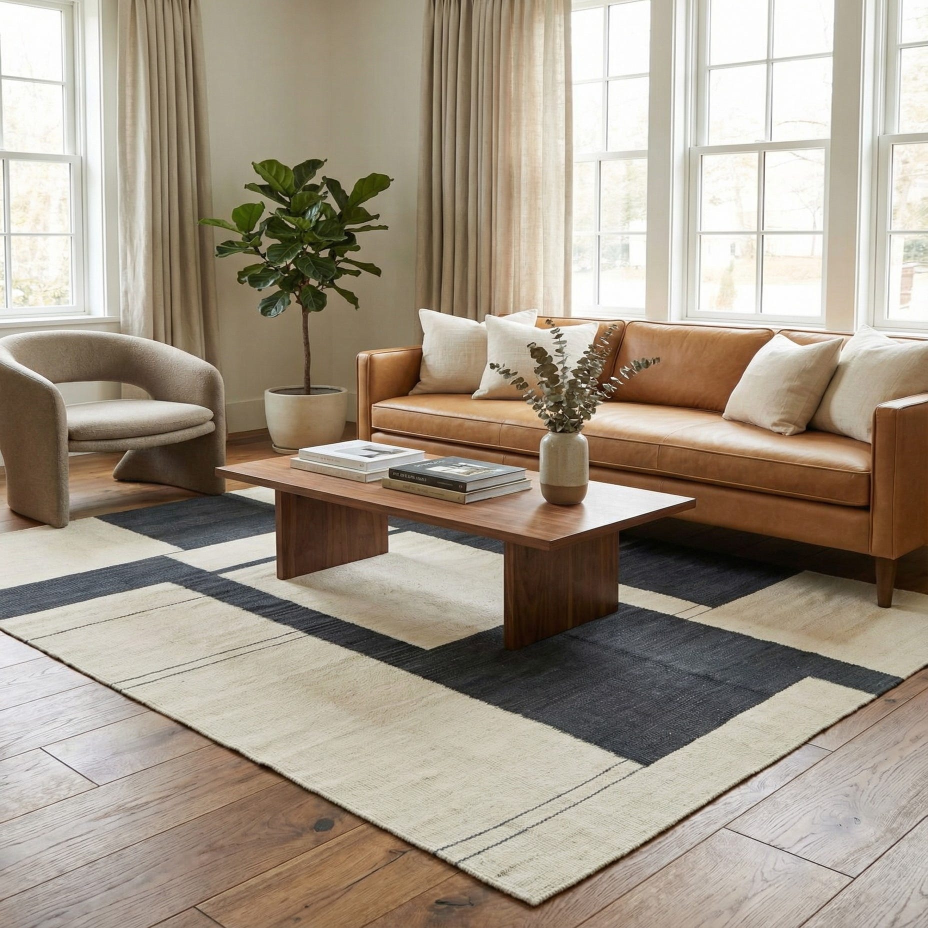 Primary color is Cream. Colors in this rug include: Cream, Black.
