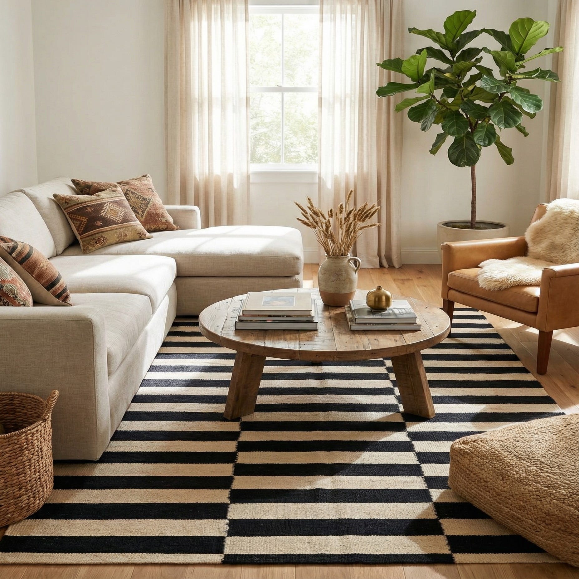 Primary color is Cream. Colors in this rug include: Cream, Black.