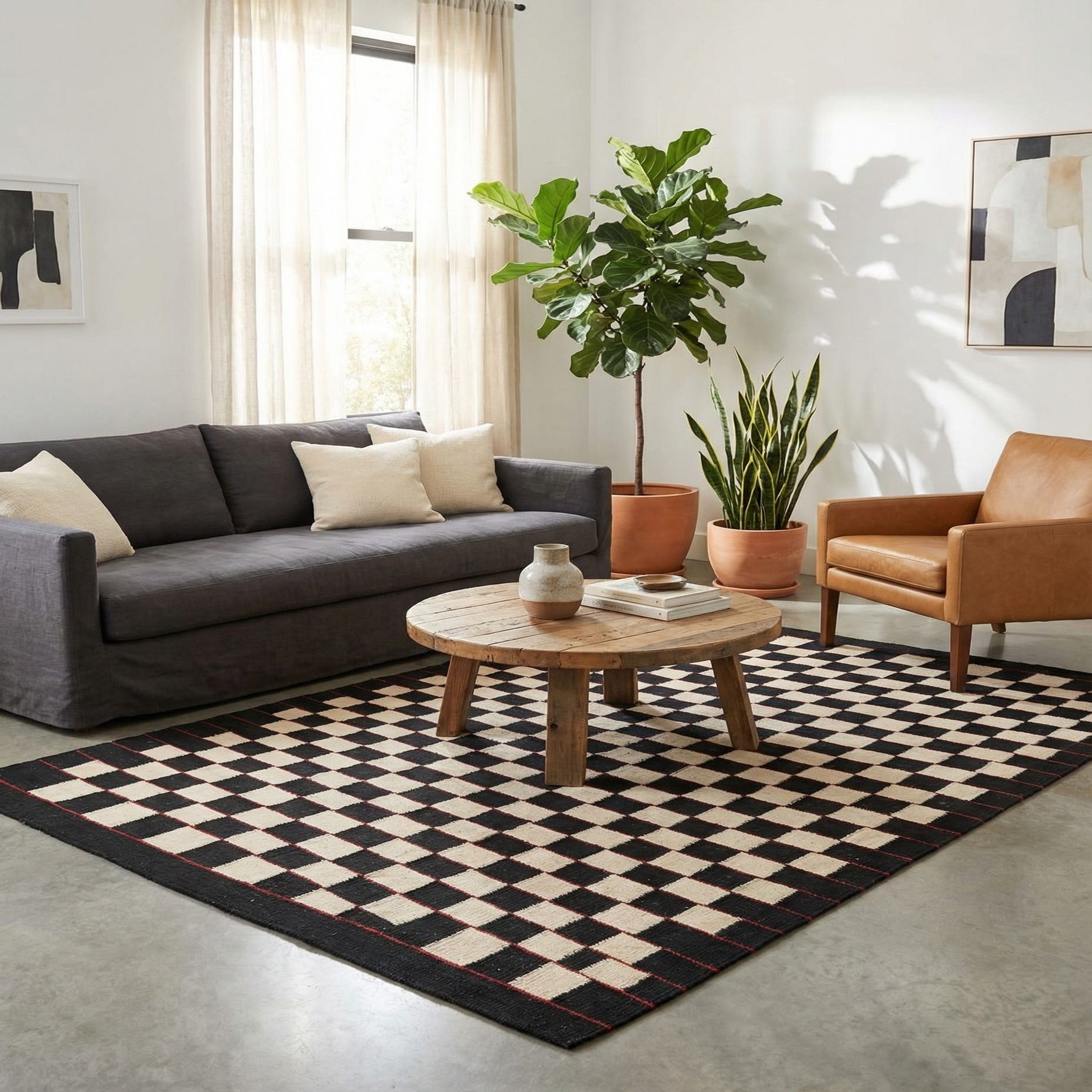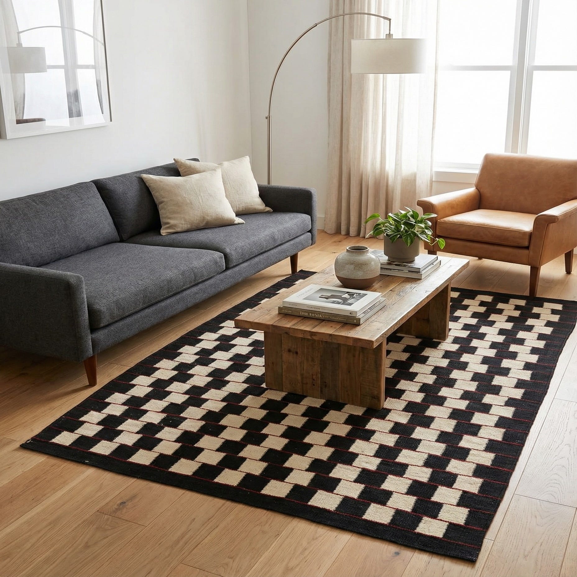 4' 5 x 6' Hand Woven Kilim Modern Wool Rug