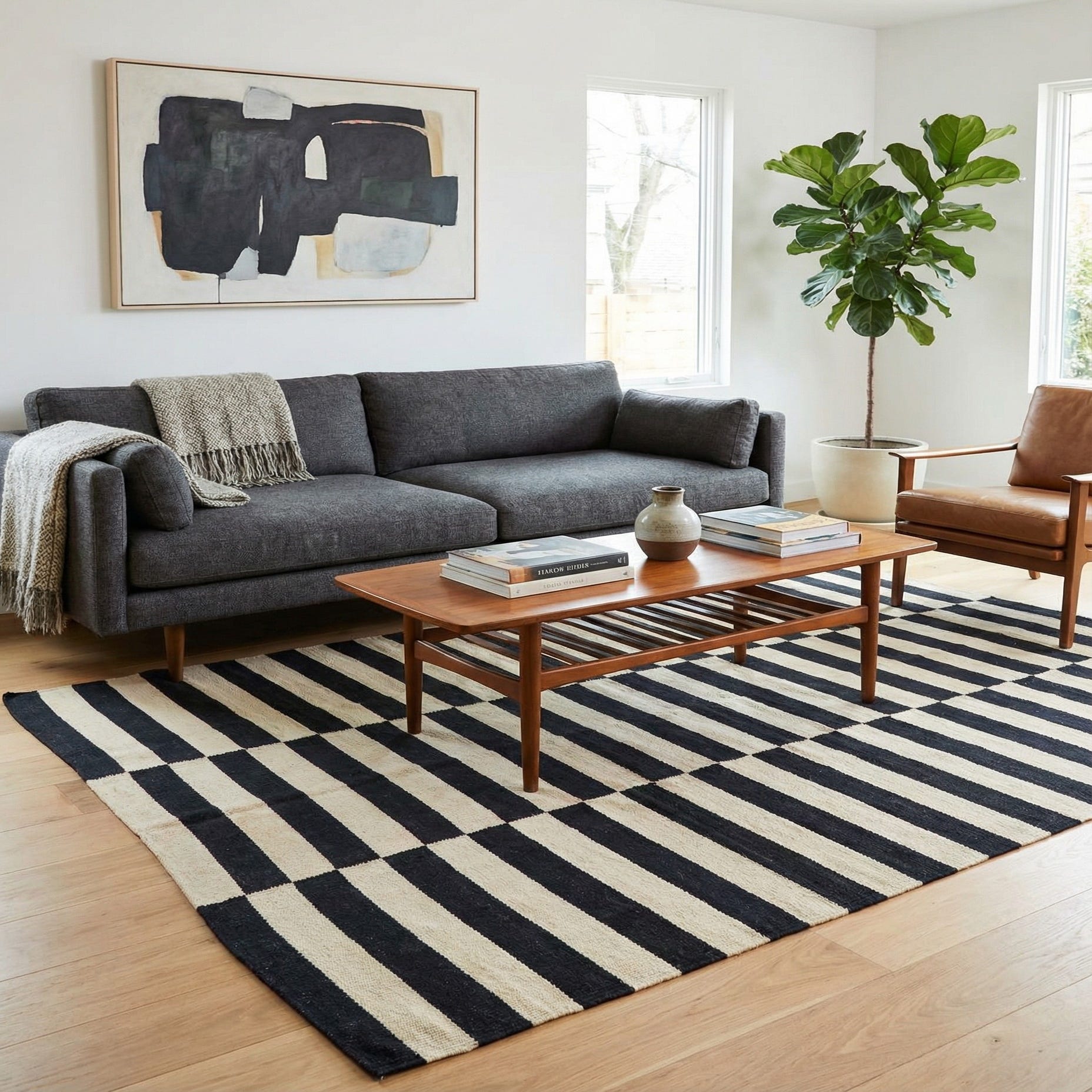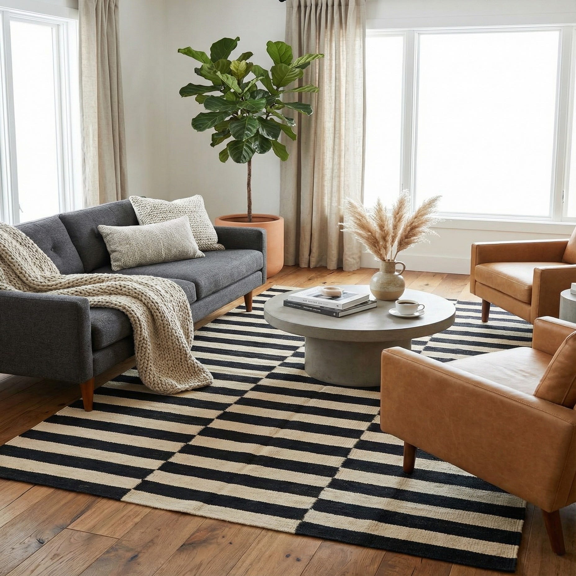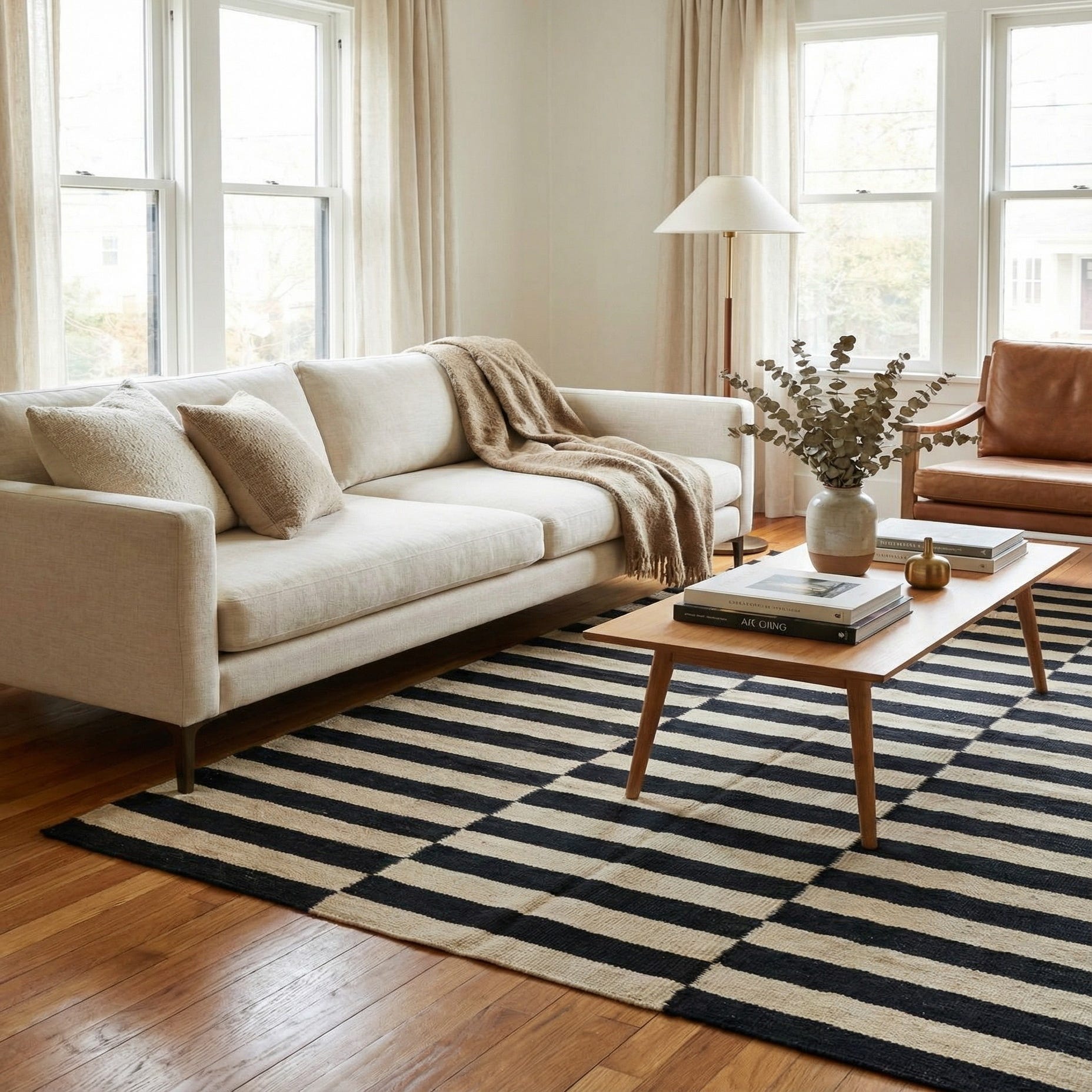 Primary color is Cream. Colors in this rug include: Cream, Black.