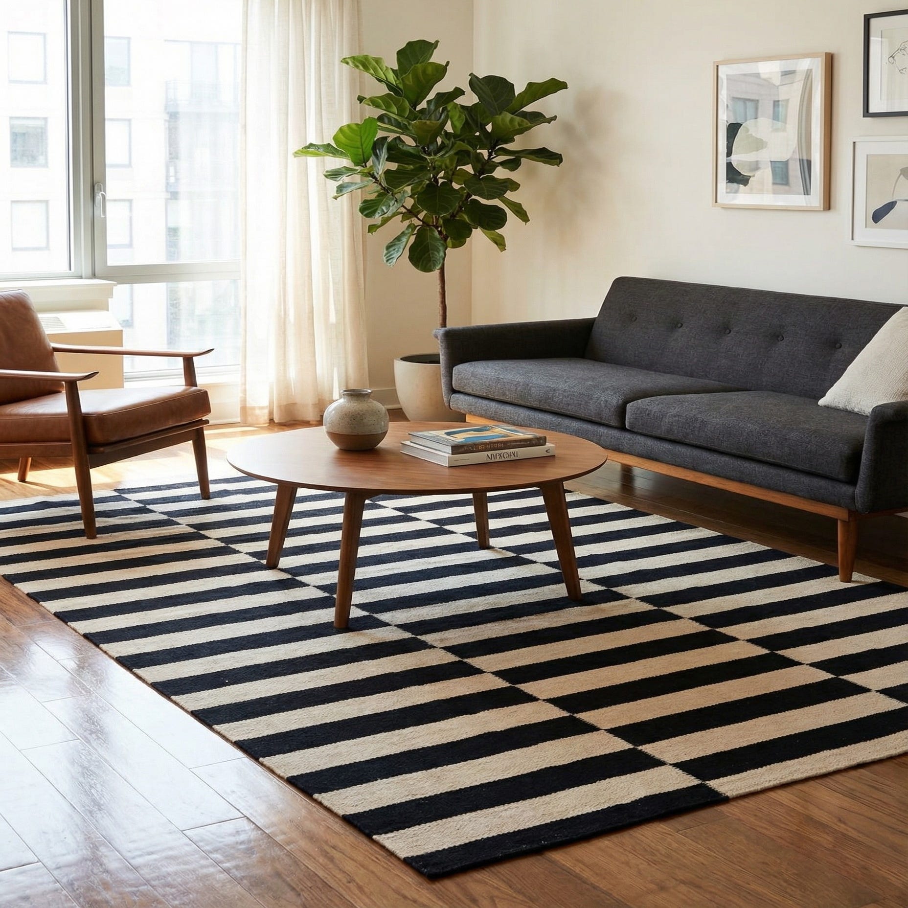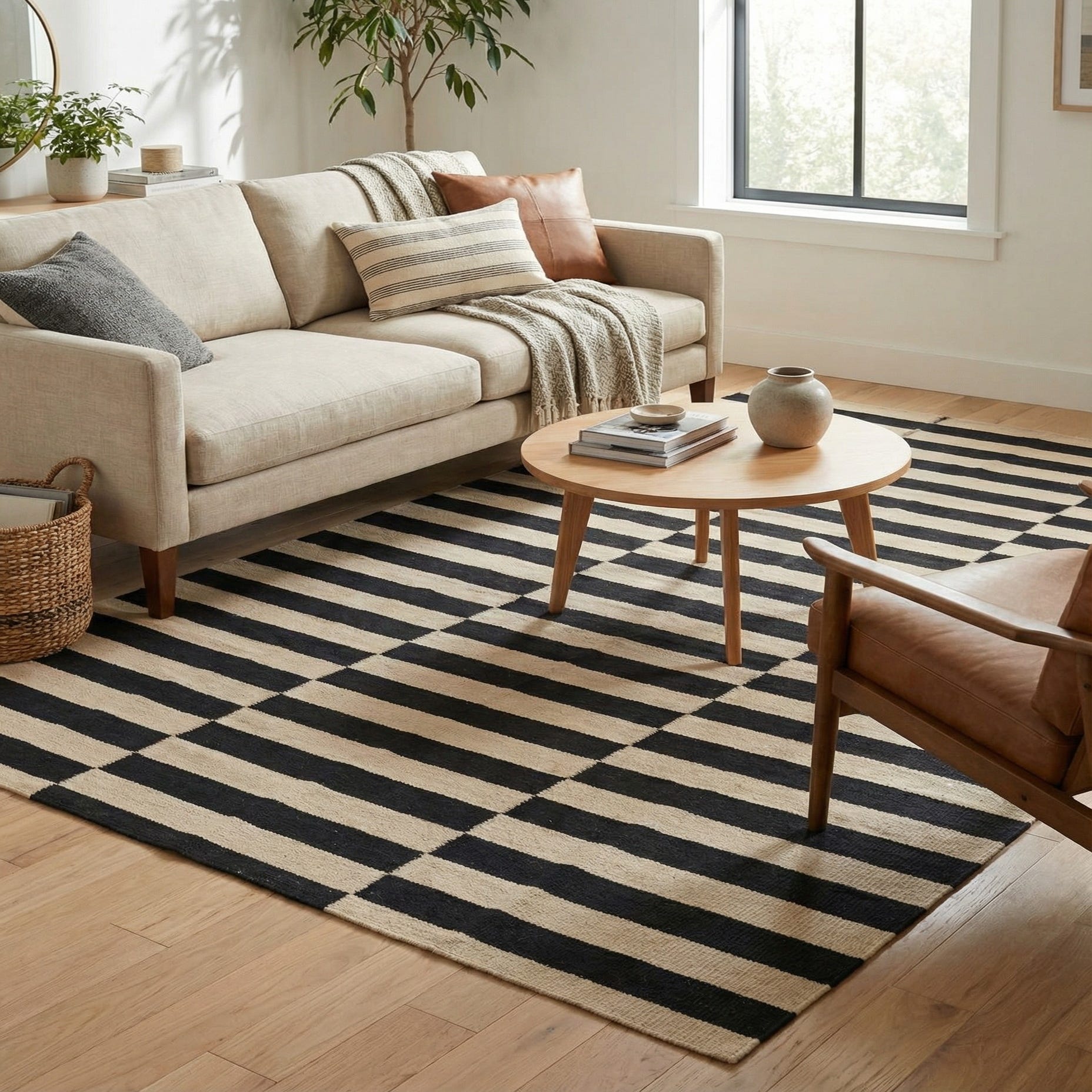 Primary color is Cream. Colors in this rug include: Cream, Black.