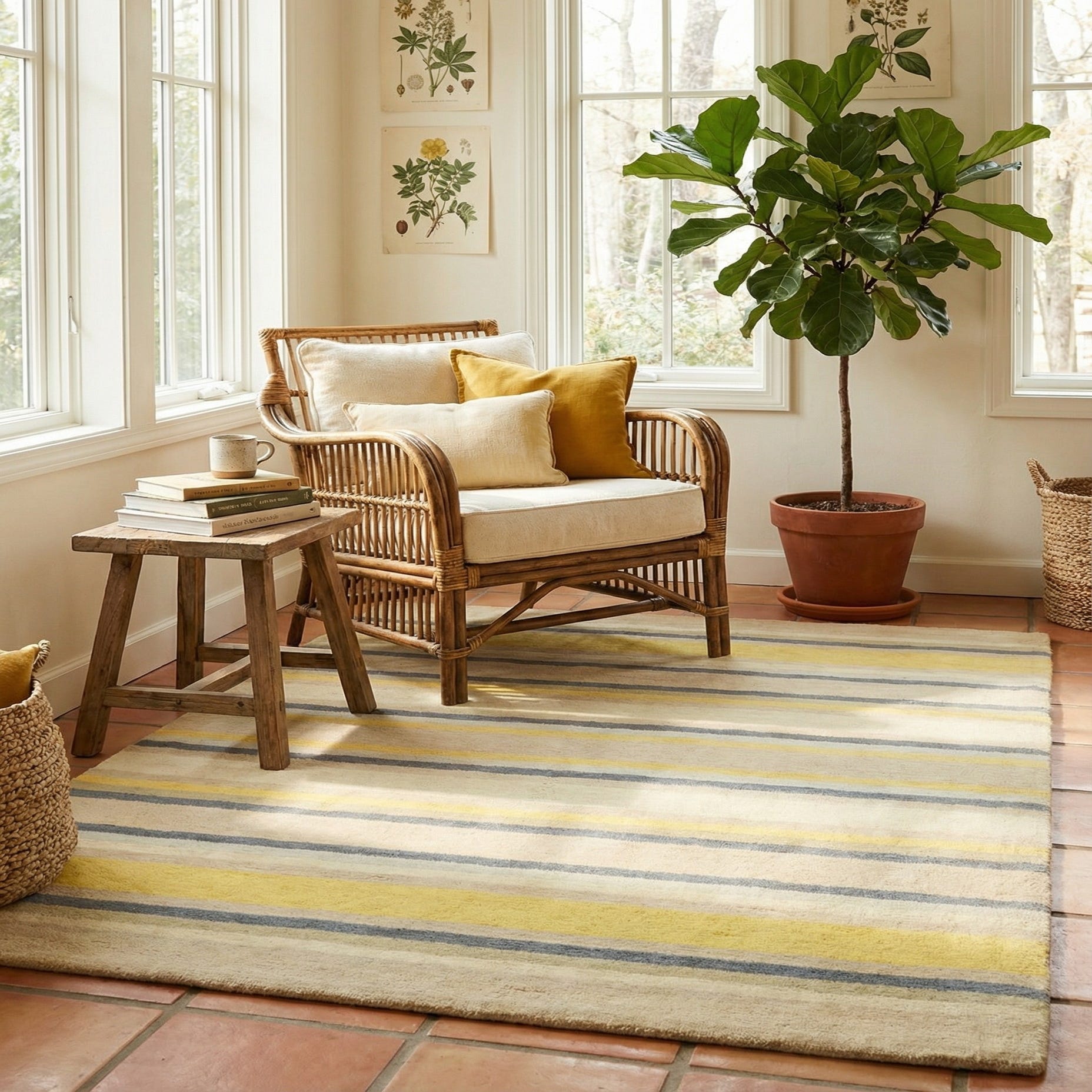 Primary color is Cream. Colors in this rug include: Cream, Beige, Gray, Light Blue, Olive, Yellow.