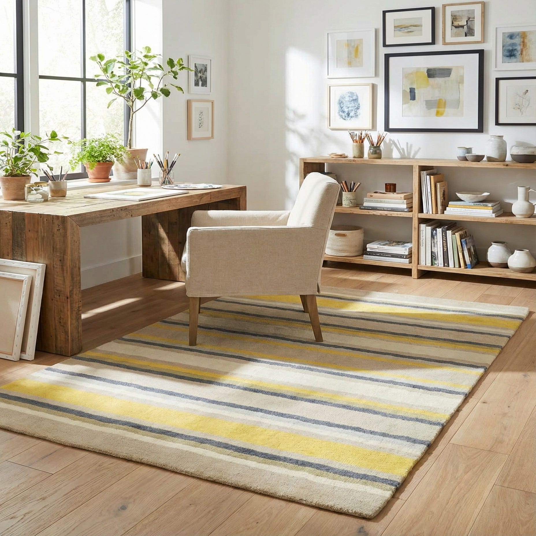 Primary color is Cream. Colors in this rug include: Cream, Beige, Gray, Yellow, Light Blue, Olive.